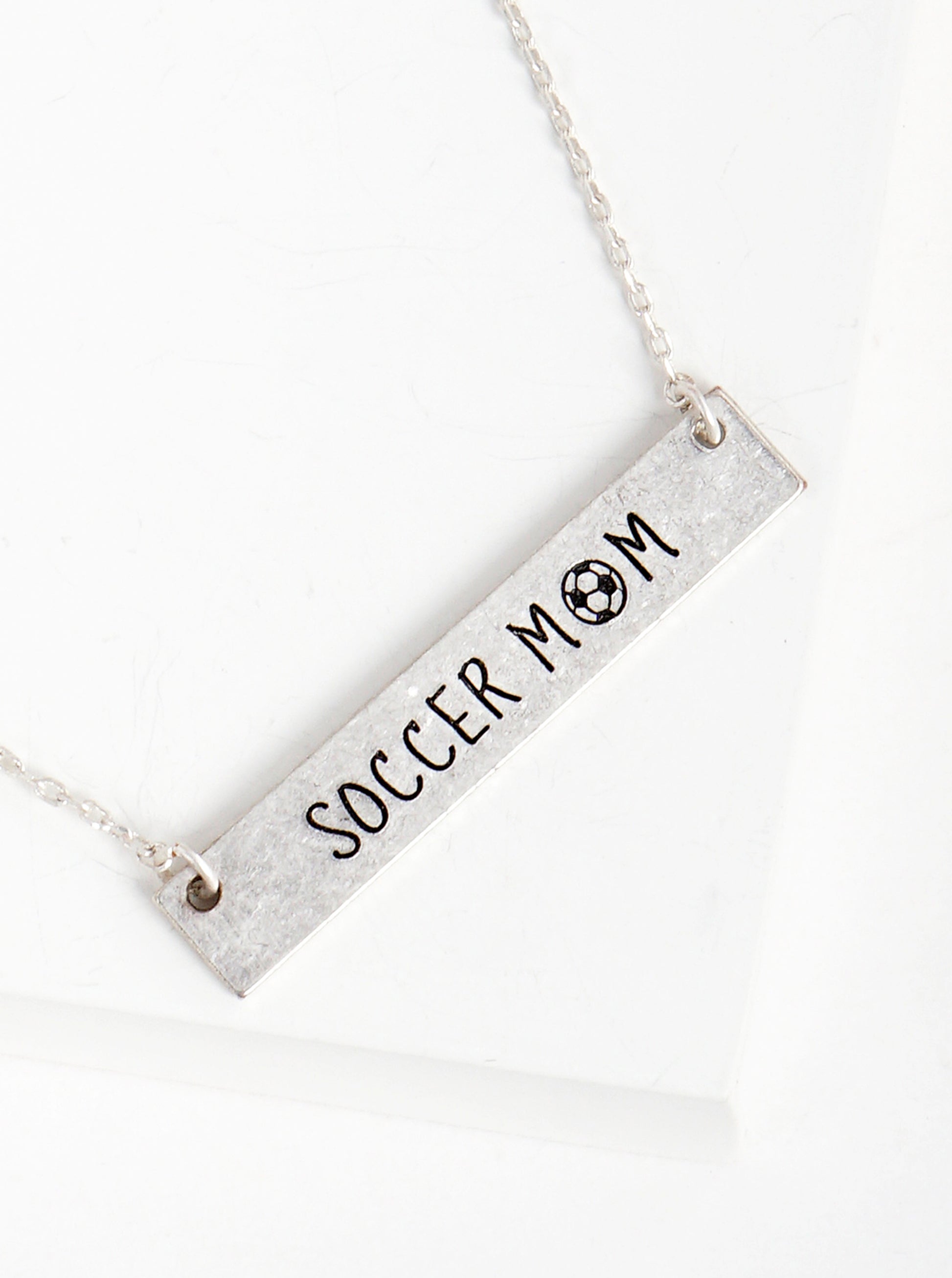 Soccer Mom Engraved Horizontal Bar Pendant Necklace