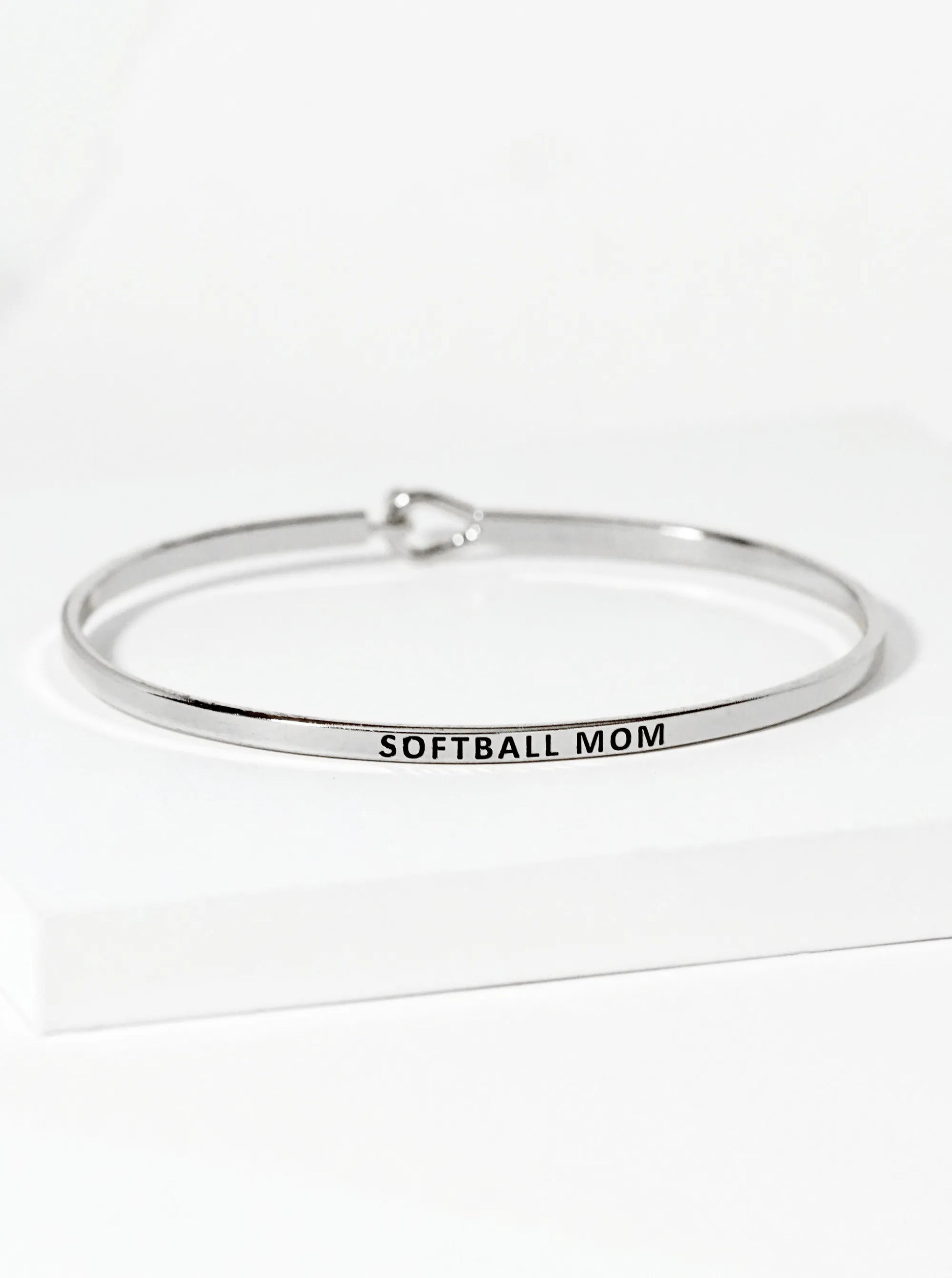 Softball Mom Engraved Inspirational Bangle Bracelet