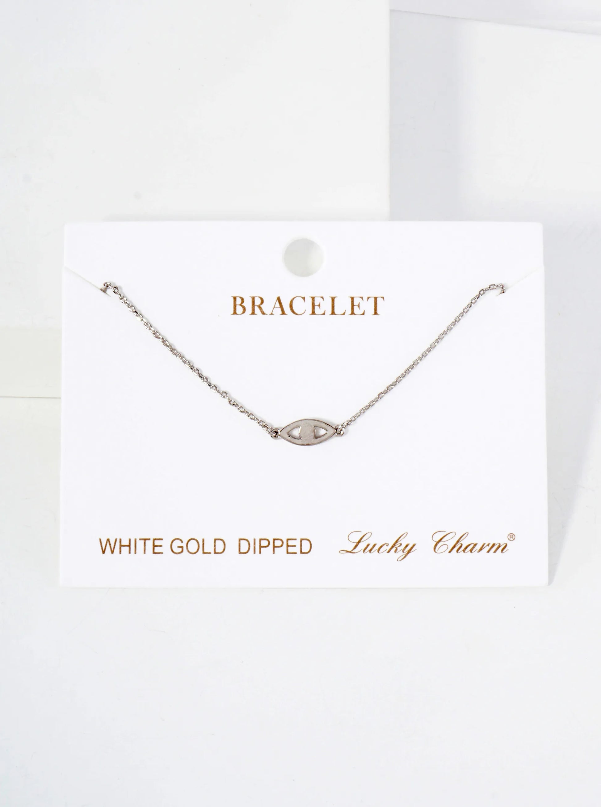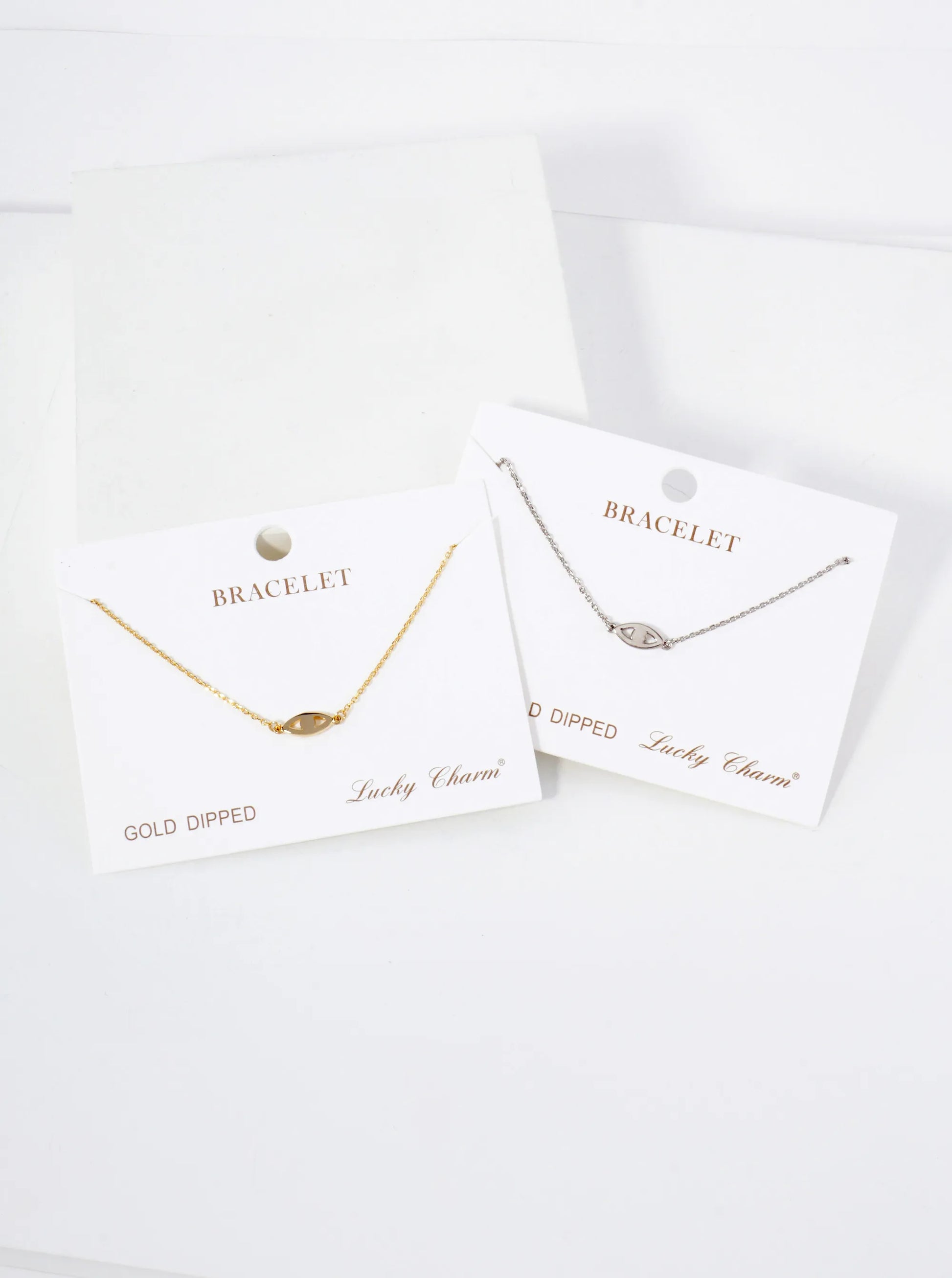 This Bracelet Combines Protection And Elegance In A Chic Design. Featuring 10mm Polished Brass Evil-eye Accents, Each Symbol Is Carefully Crafted To Bring A Sense Of Spiritual Protection And Good Fortune. Dipped In Luxurious 18K Gold, The Evil-eye Accents Shine With A Radiant Finish, Adding A Touch Of Sophistication And Warmth To The Bracelet. The Delicate Chain Allows For Comfortable Wear, While The Spiritual Theme Makes This Piece Both Meaningful And Stylish.