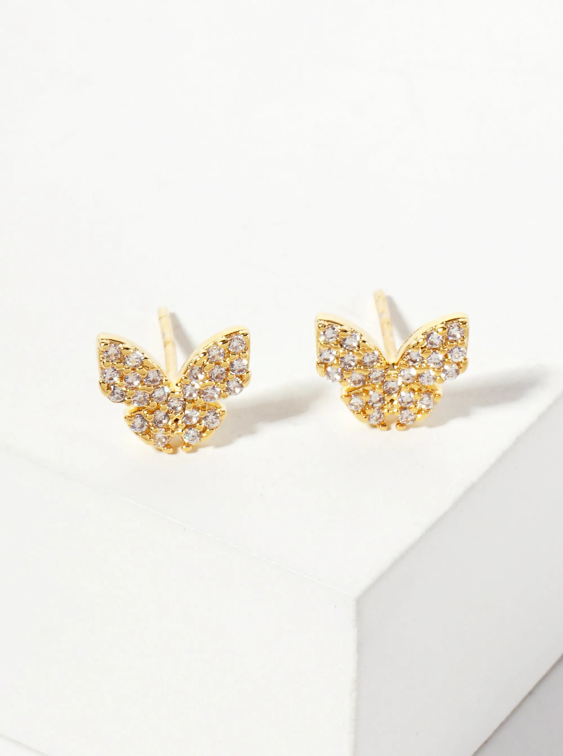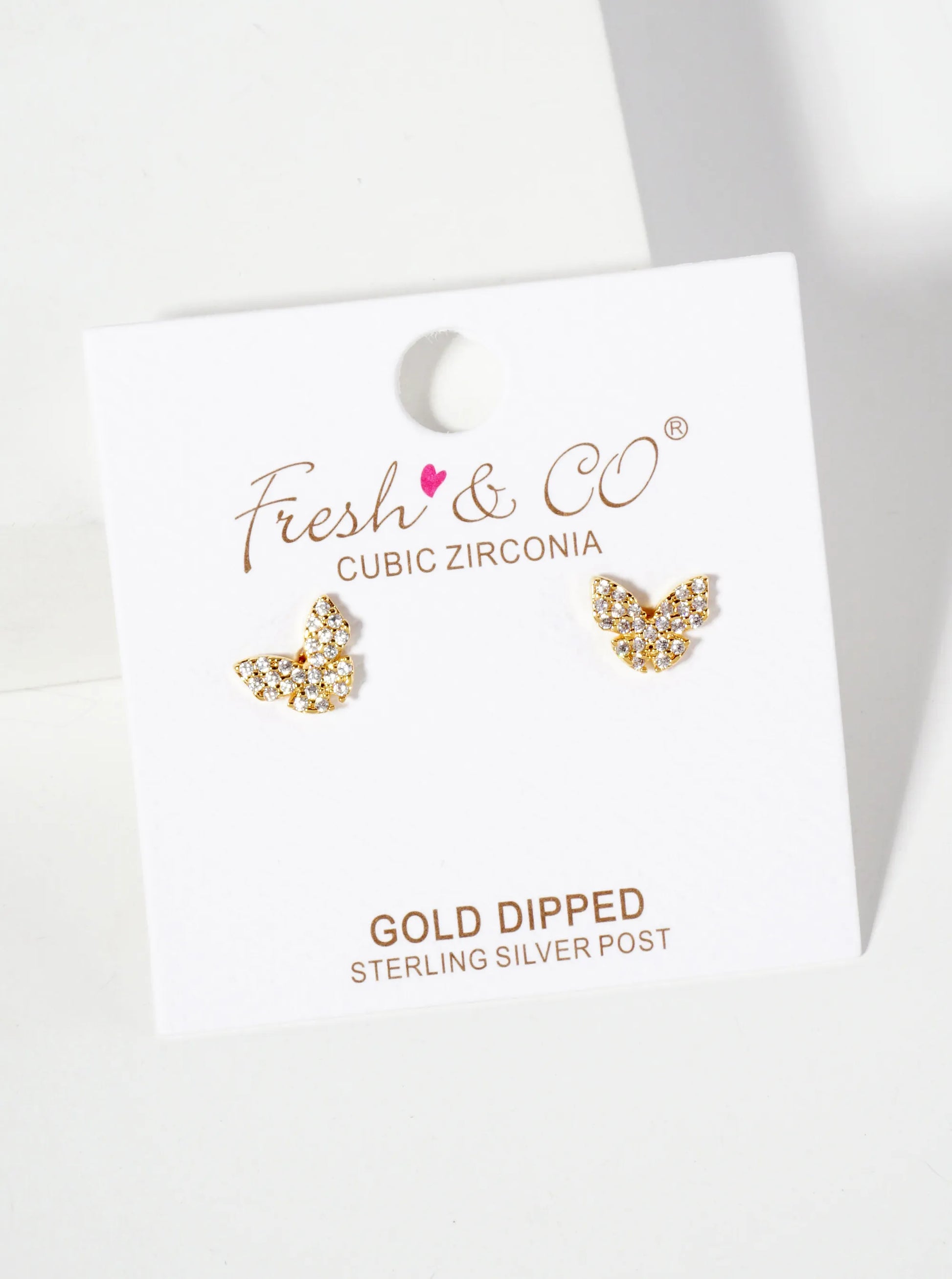 Spiritual-Theme 18K-Gold-Dipped 8mm CZ Pave Butterfly Stud Earrings