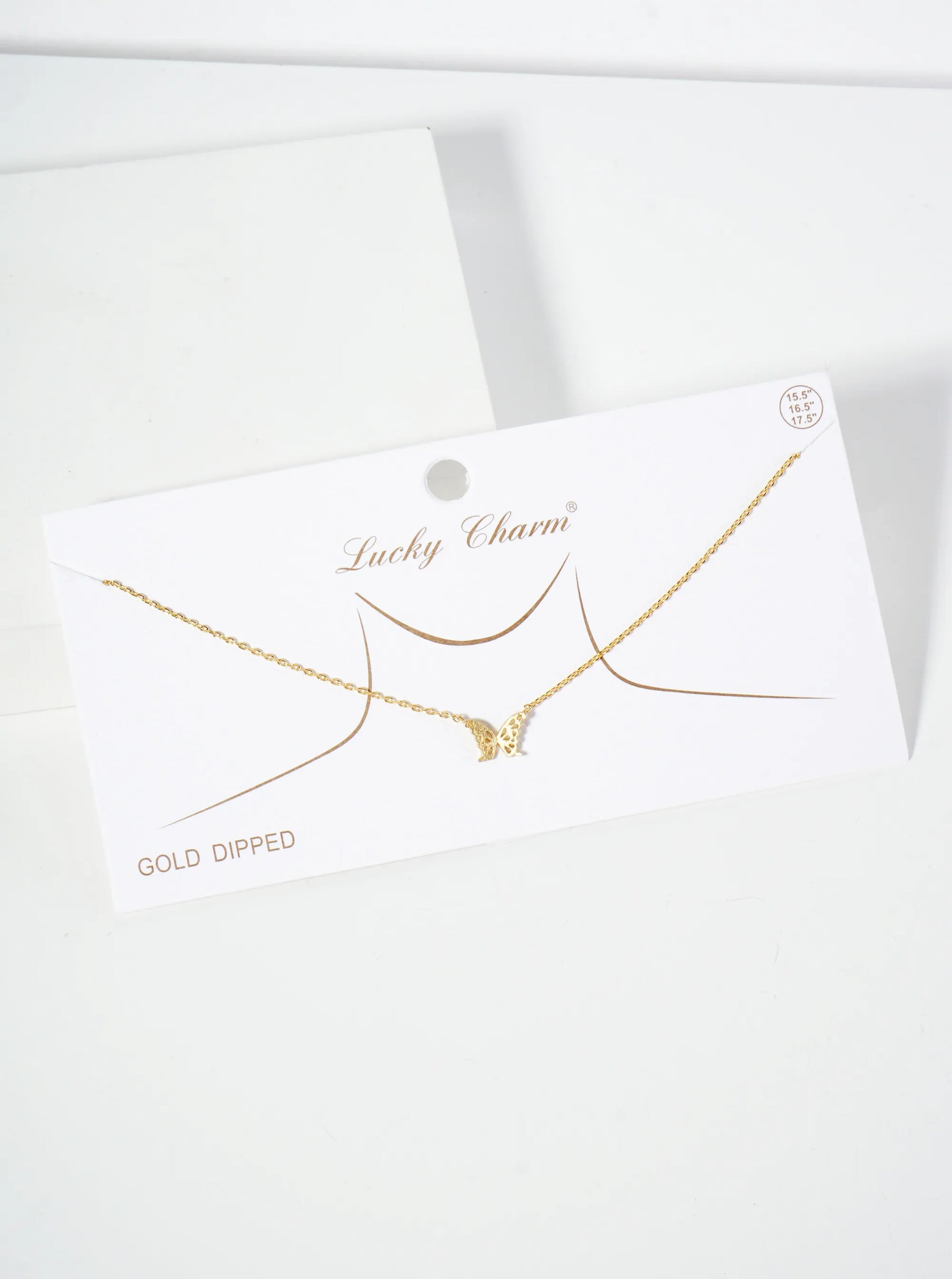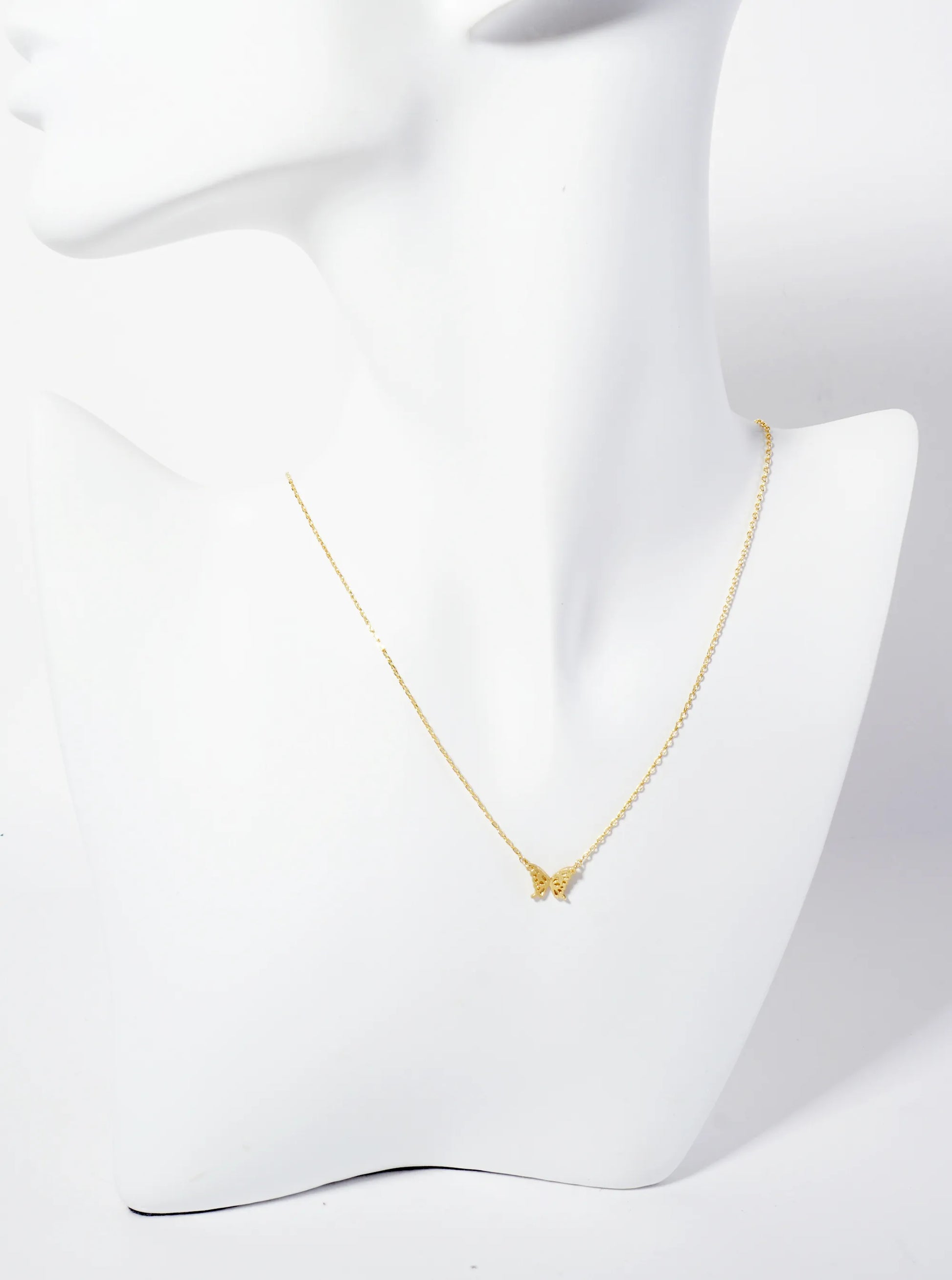 The Pendant Features A Butterfly In A Brushed-texture Style, Which Adds A Subtle, Organic Feel To The Piece. The Butterfly Is Delicately Designed With Detailed Wings, Capturing Its Light, Graceful Nature. The Brushed Texture Enhances The Pendant's Natural Elegance, Giving It A Soft, Matte Finish That Contrasts Beautifully With The Warm 18K Gold-dipped Surface.