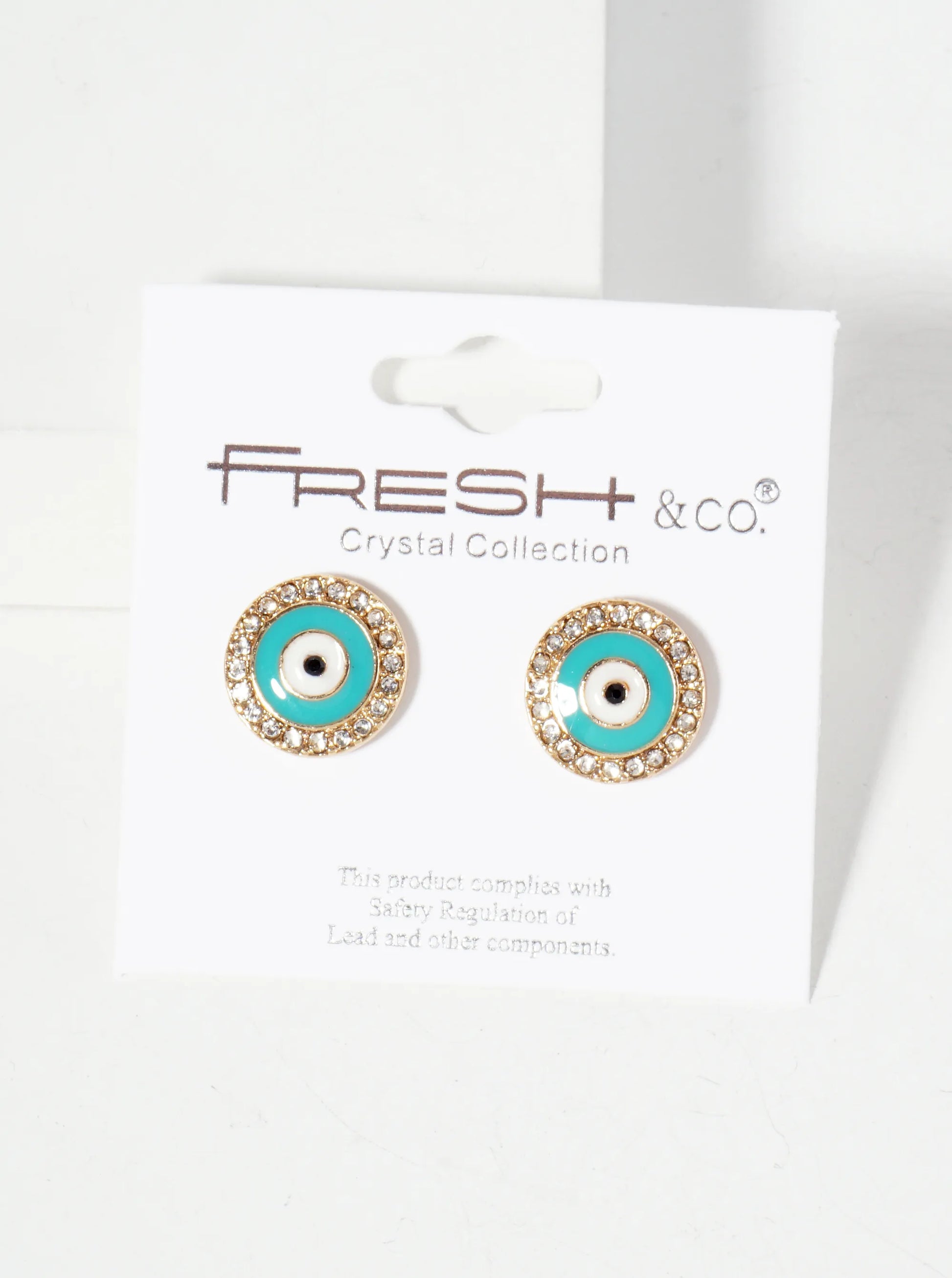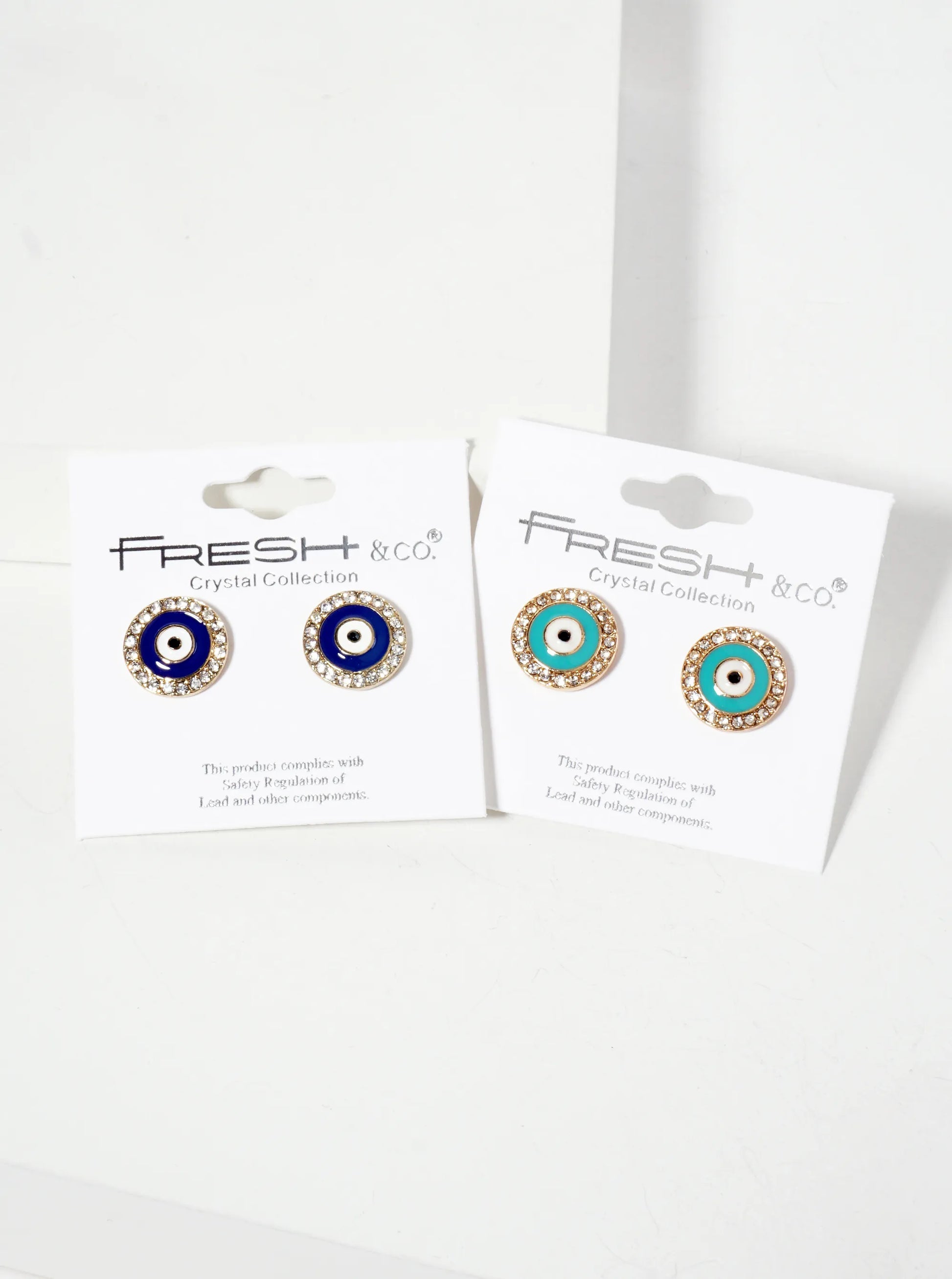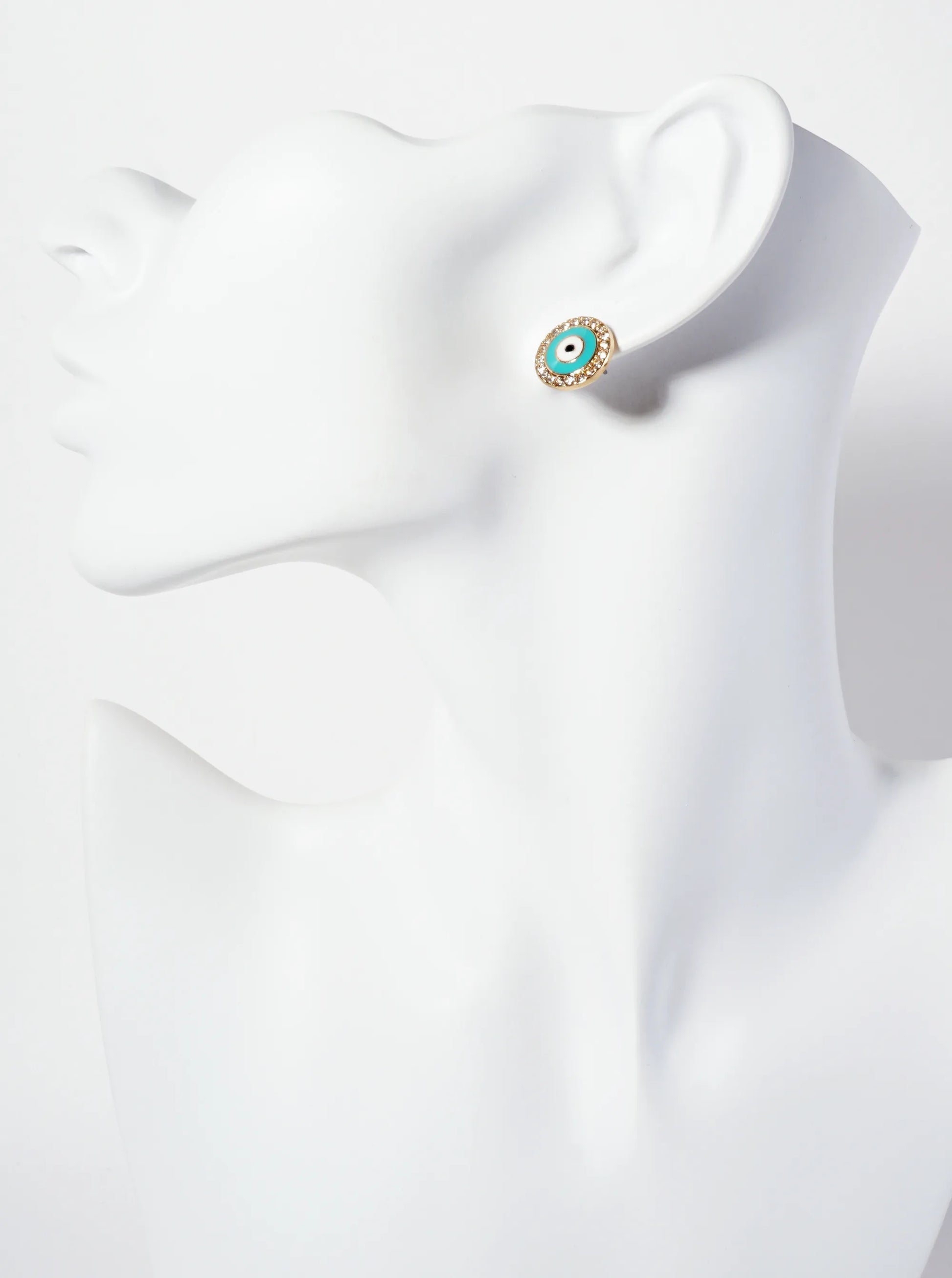 Spiritual-Theme Crystal-Pave 13mm Evil-Eye Stud Earrings