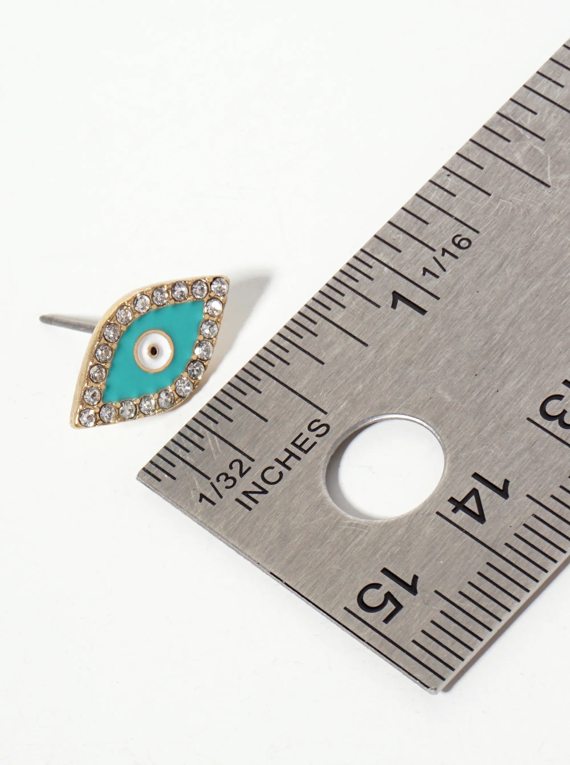 Spiritual-Theme Crystal-Pave 13mm Evil-Eye Stud Earrings