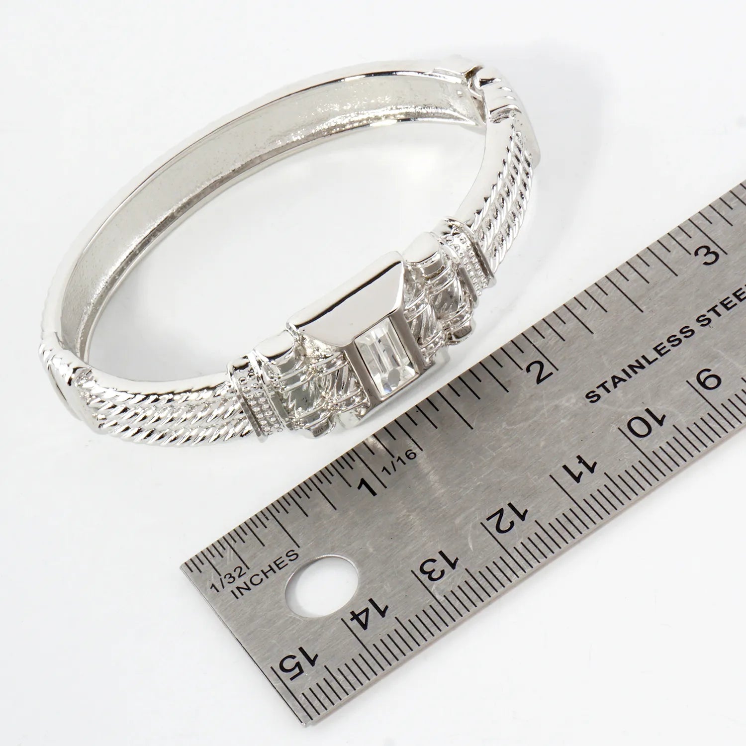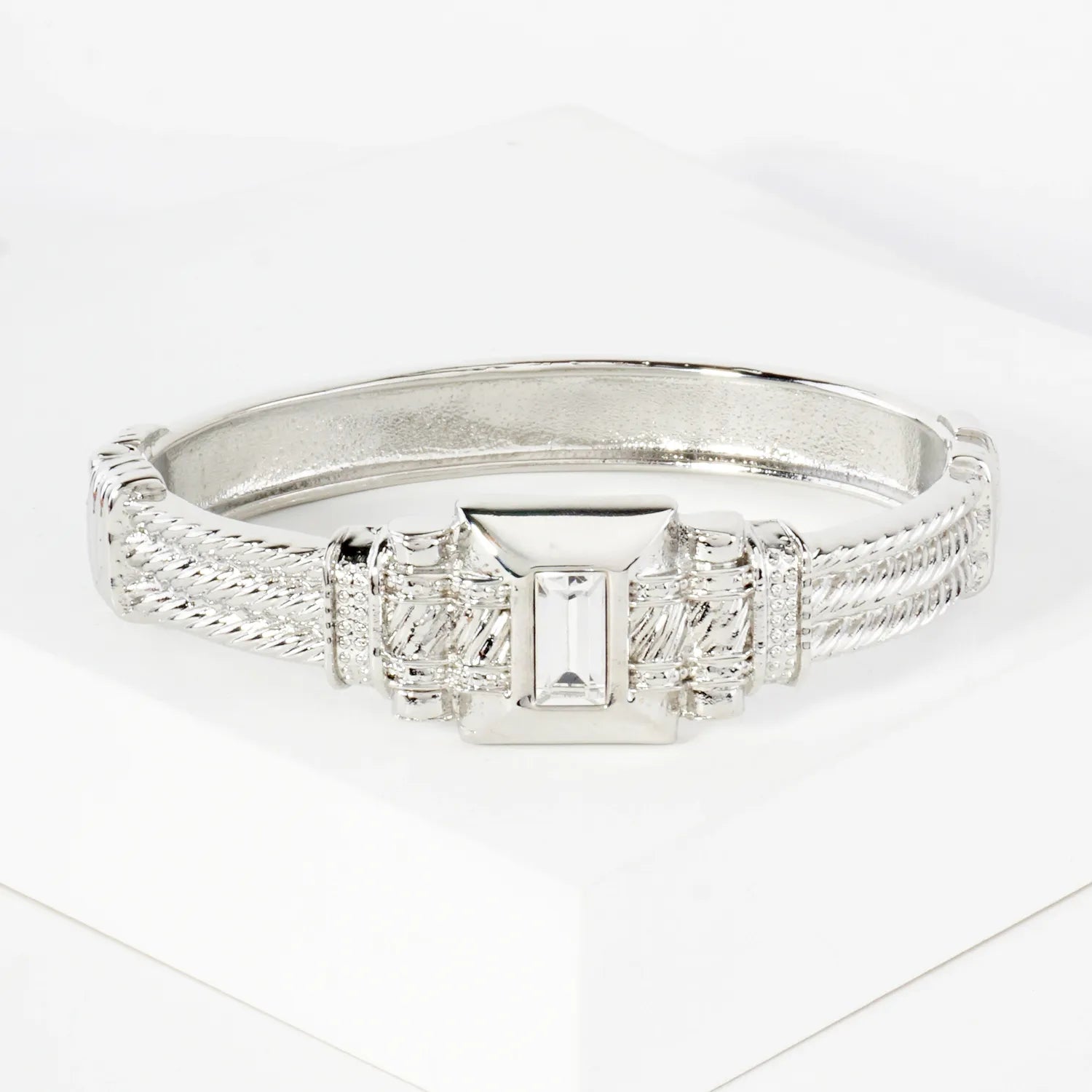 Square-Cut Rhinestone Accent Metal Cuff Bracelet