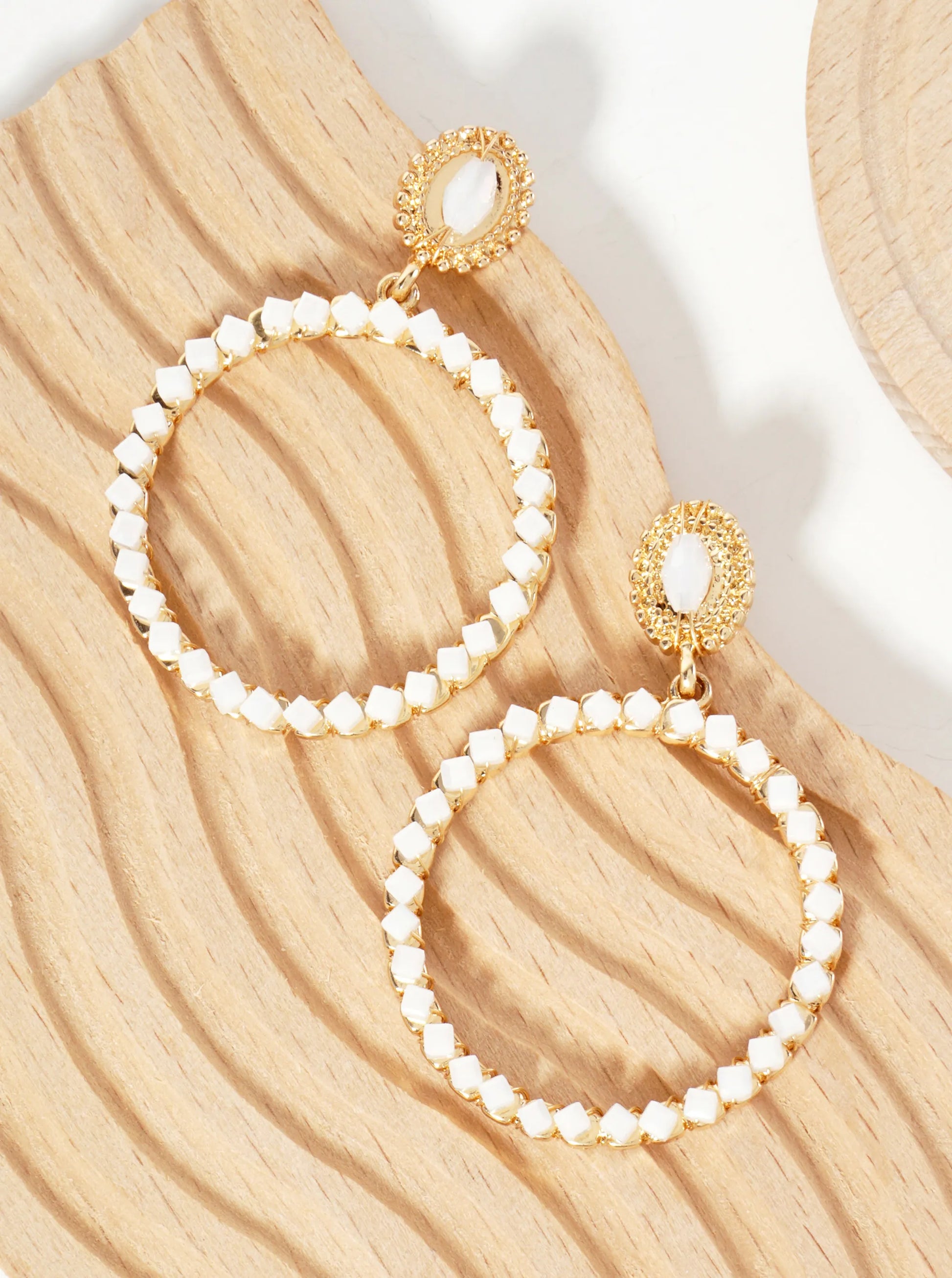 Square-Shaped Glass-Bead Wire-Wrapped Circle Drop Dangle Post Earrings