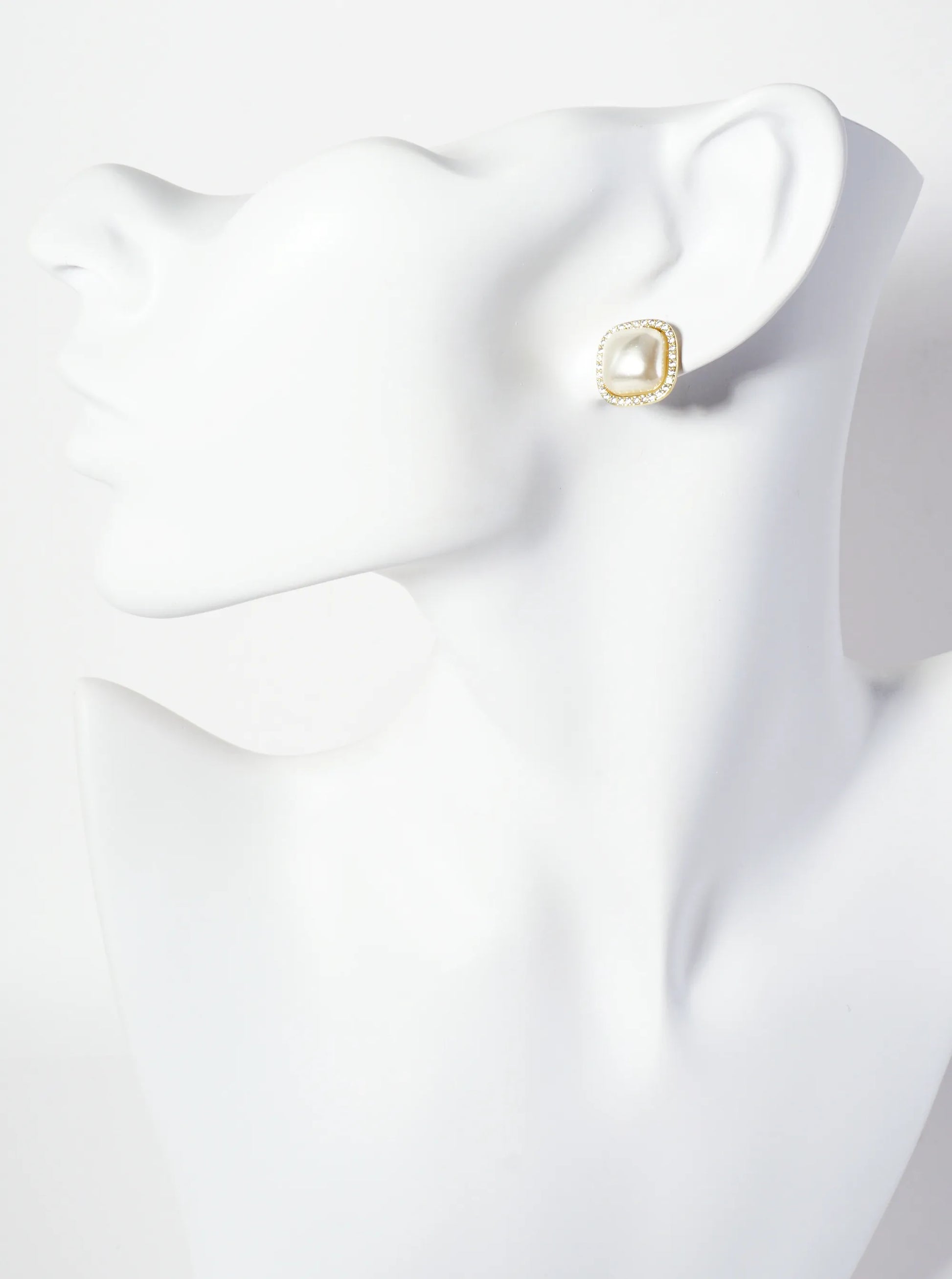 Square-Shaped Pearl With Pave-Set Cubic-Zirconia Accents 18K-Gold-Dipped Stud Earrings