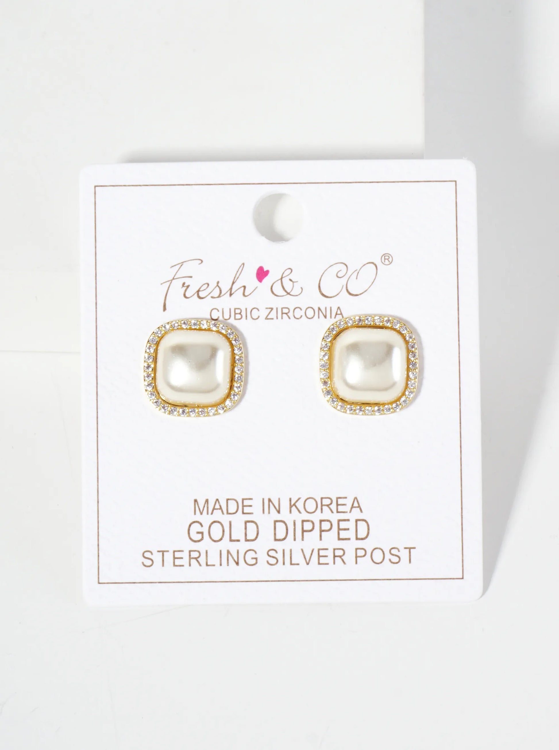 The Earrings Are A Beautifully Crafted Combination Of Timeless Elegance And Modern Sparkle. These Earrings Feature A Square-shaped Pearl At The Center, Offering A Unique And Sophisticated Twist On Traditional Round Pearls. The Pave-set Cubic Zirconia Accents Surround The Pearl, Adding A Touch Of Brilliant Sparkle And Creating A Dazzling Effect As They Catch The Light.
