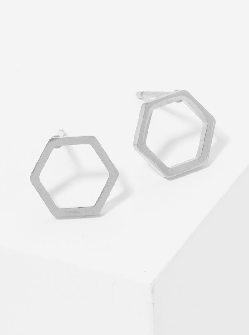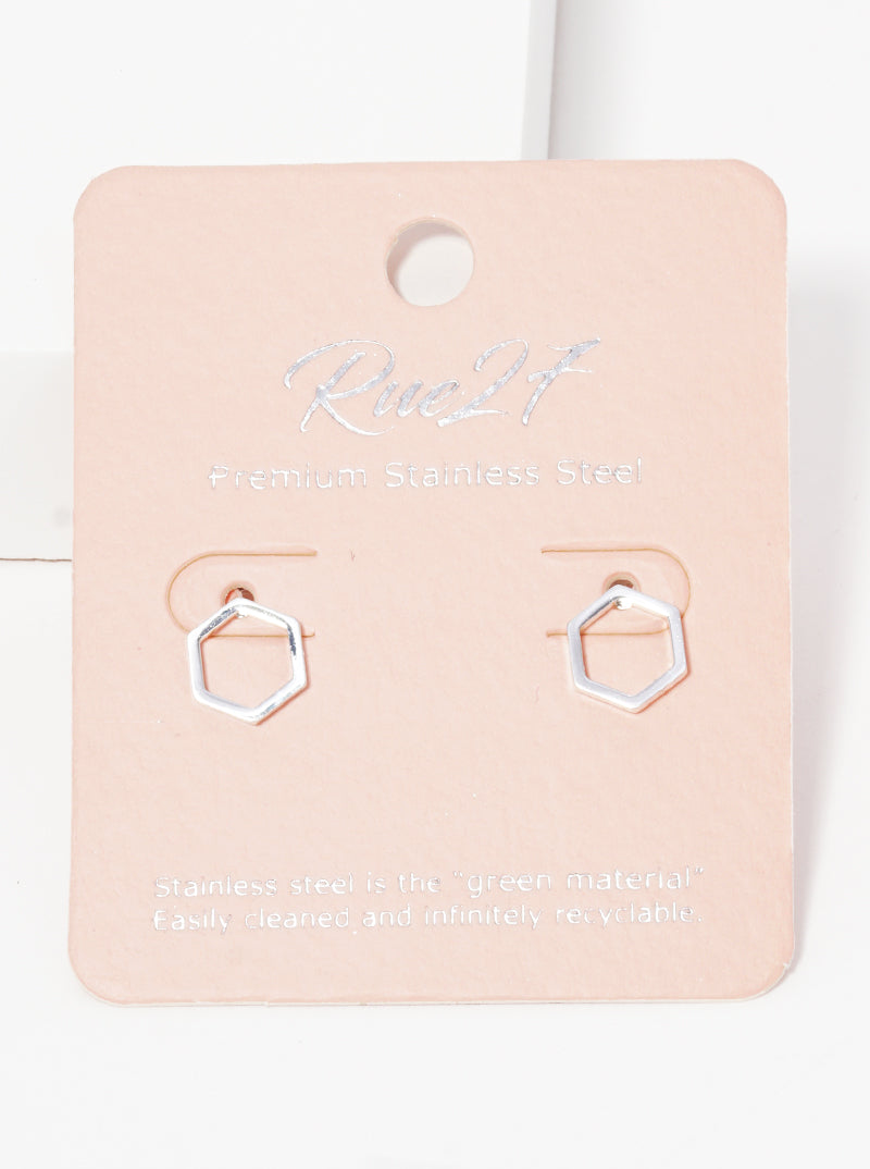 Stainless Steel Hexagon Shape Stud Earrings