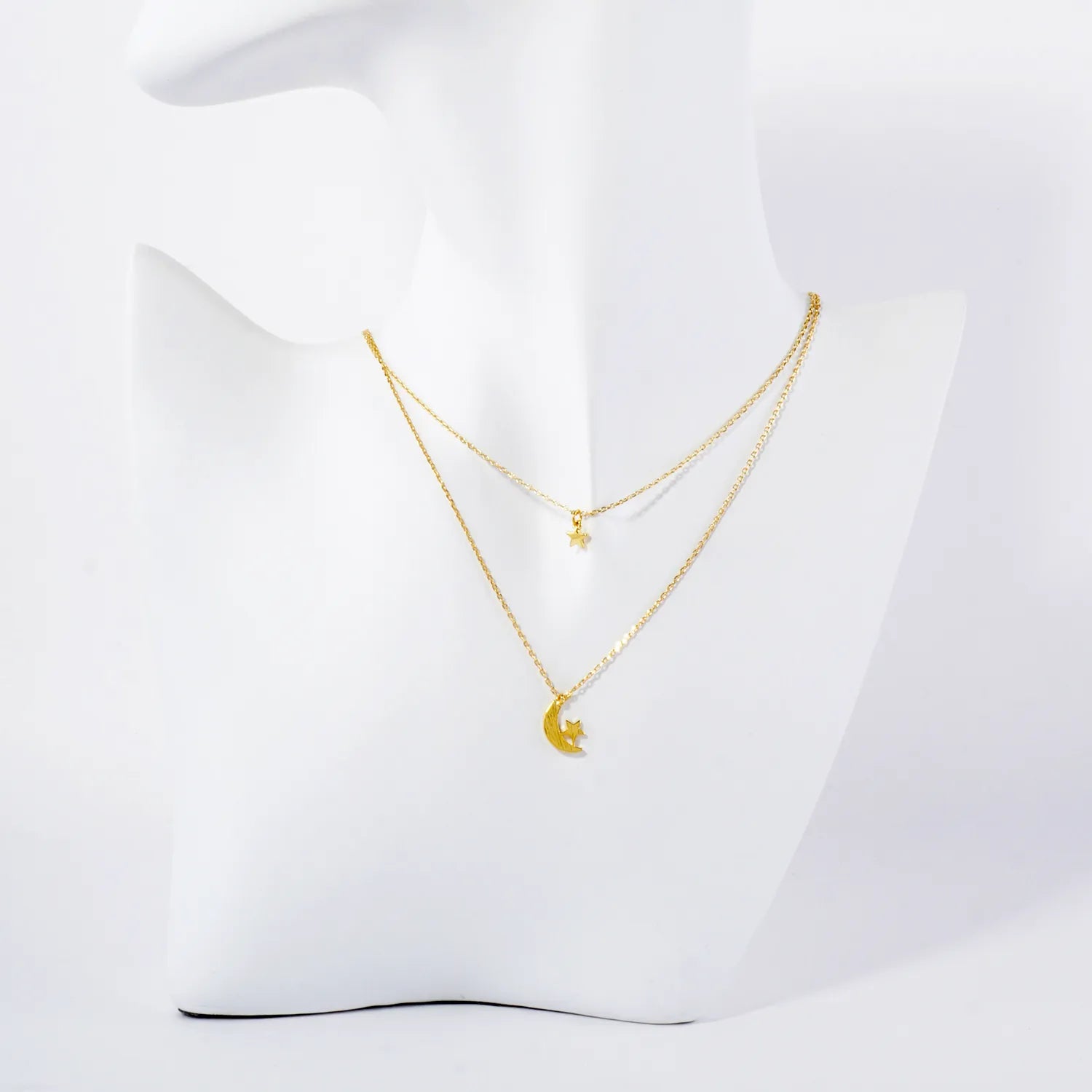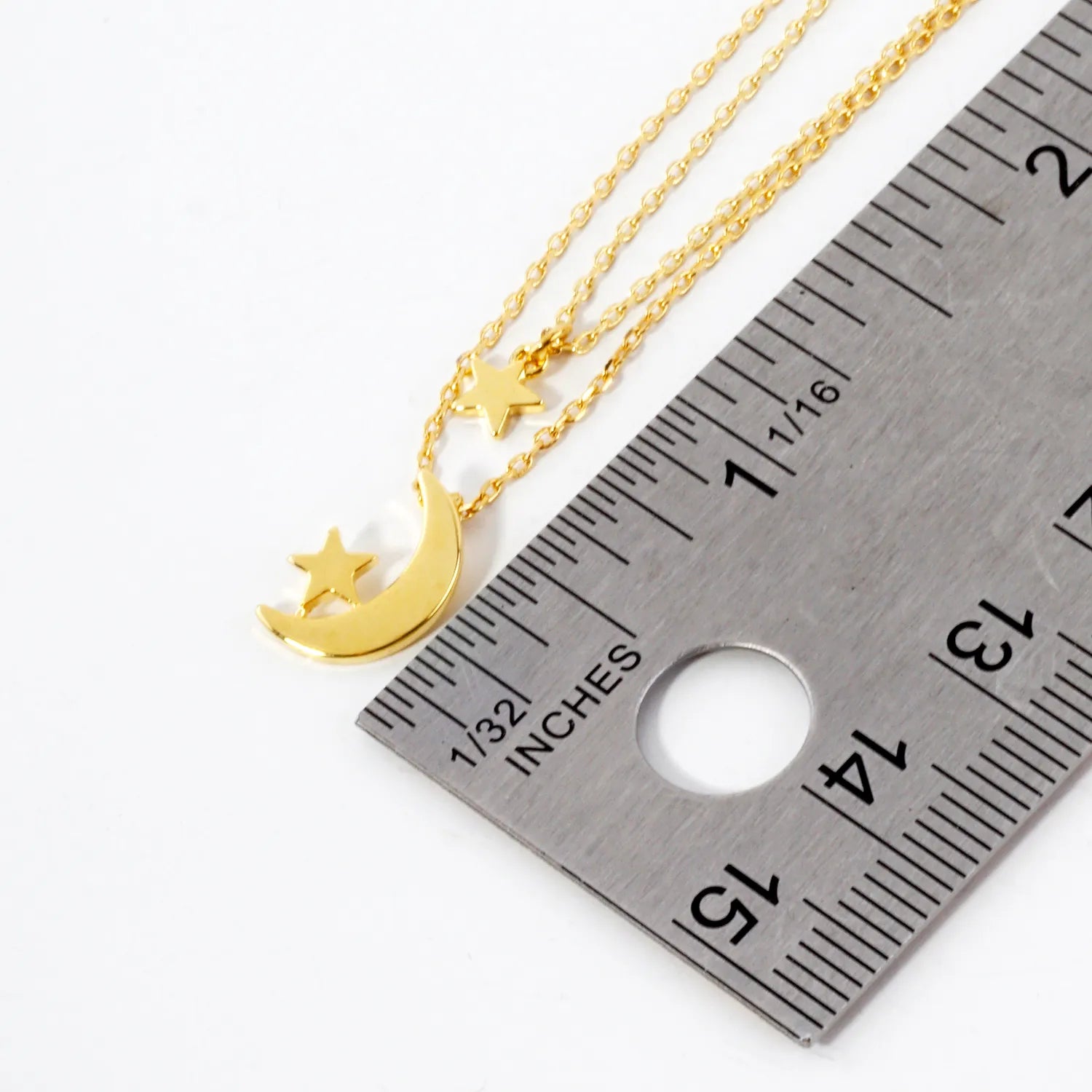 Star Moon Pendant 18K-Gold-Dipped Celestial Layered Necklace