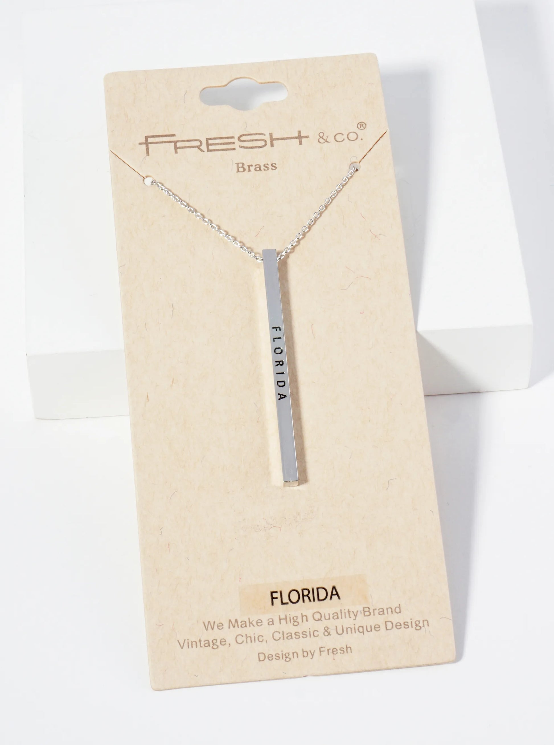 State Of Florida Engraved Vertical Bar Pendant Necklace