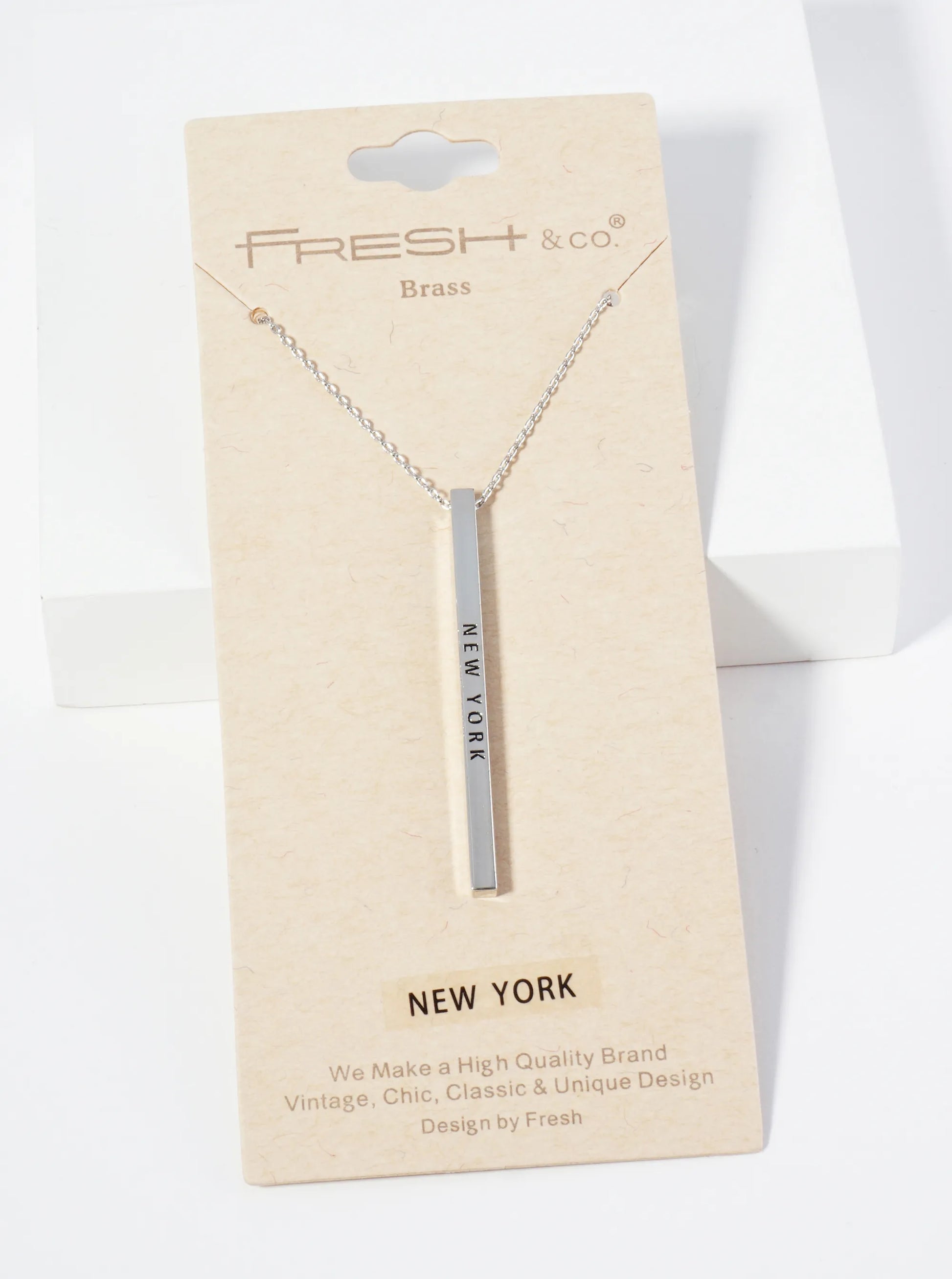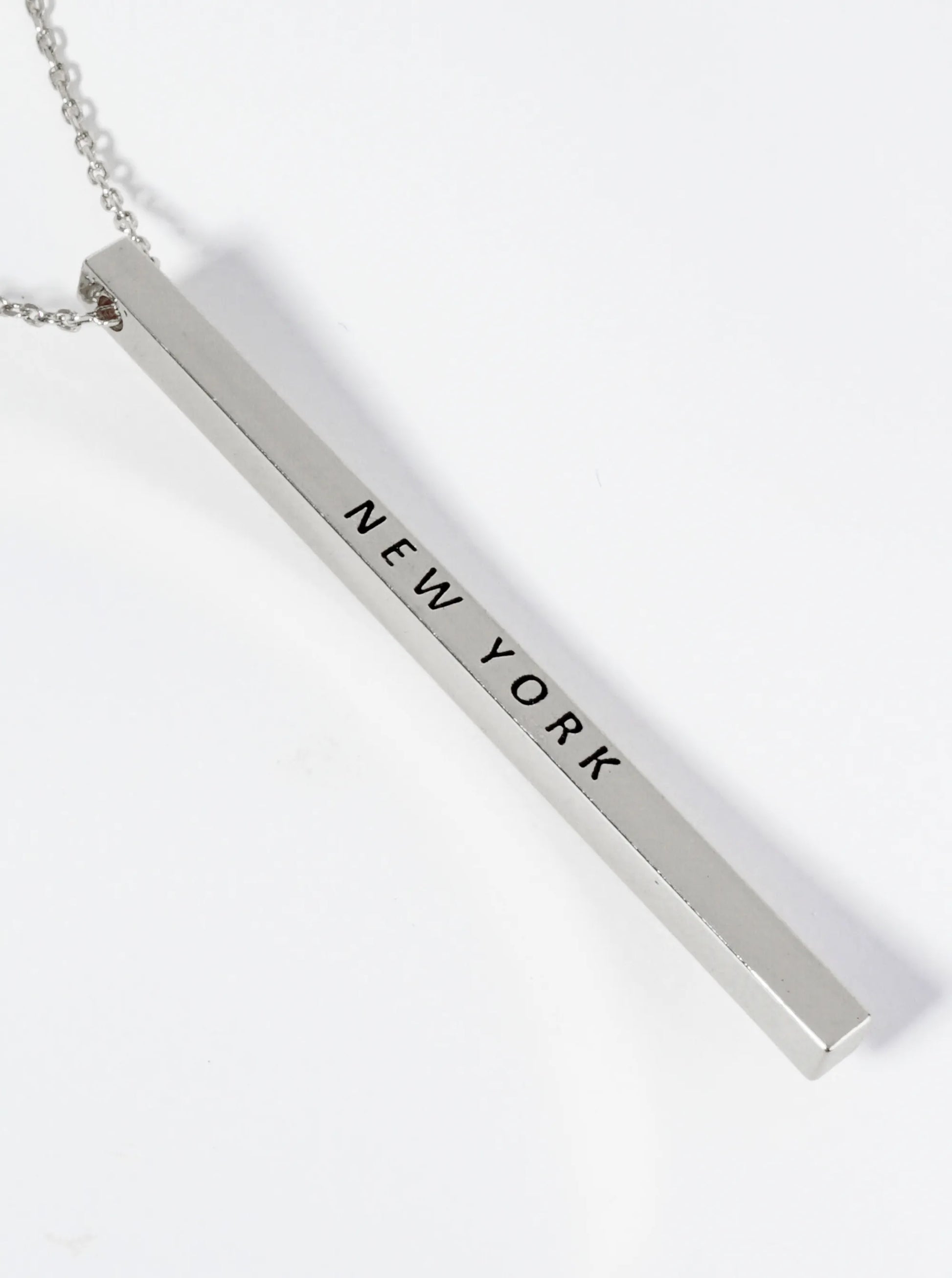 State Of New York Engraved Vertical Bar Pendant Necklace