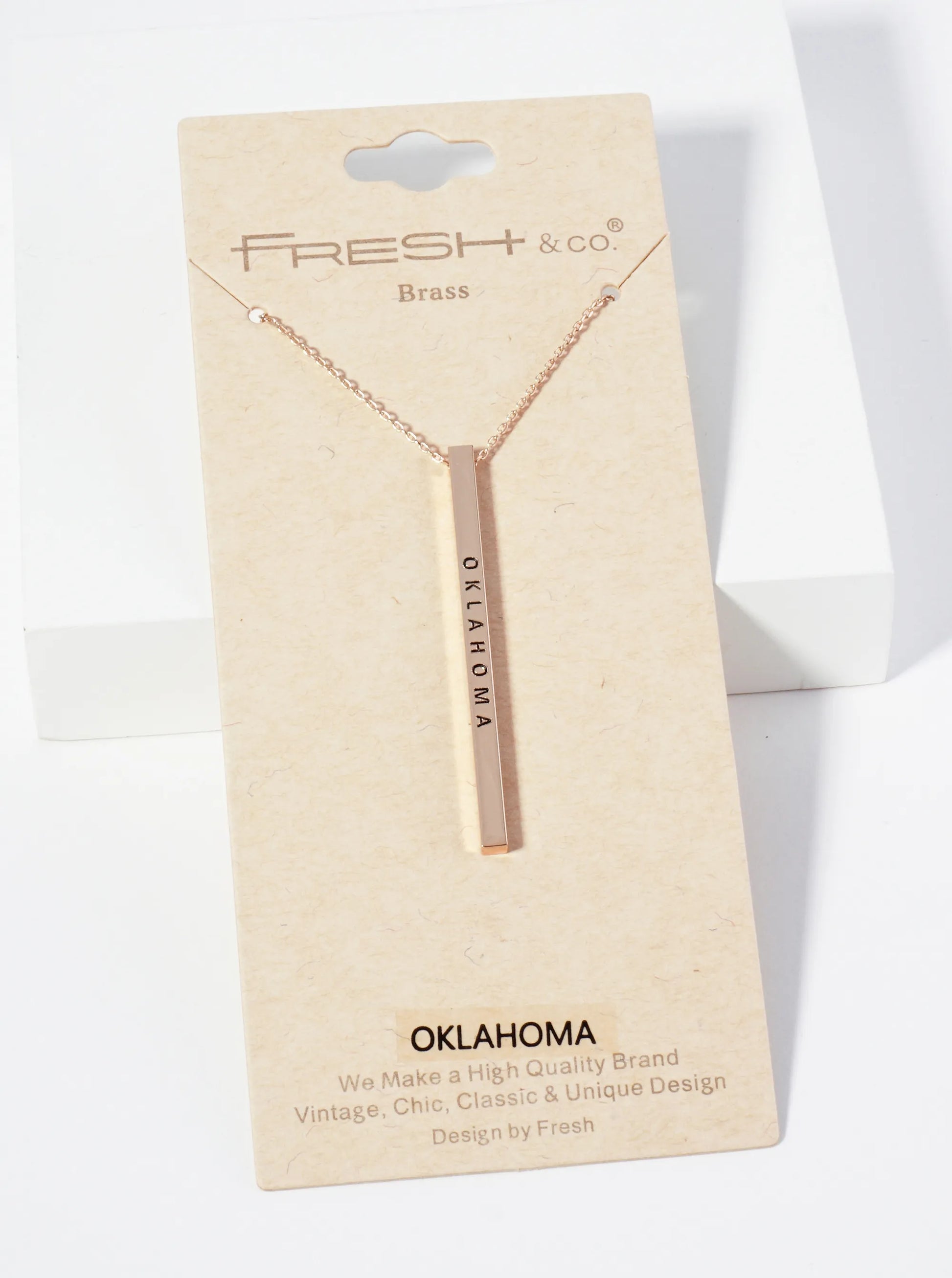 State Of Oklahoma Engraved Vertical Bar Pendant Necklace