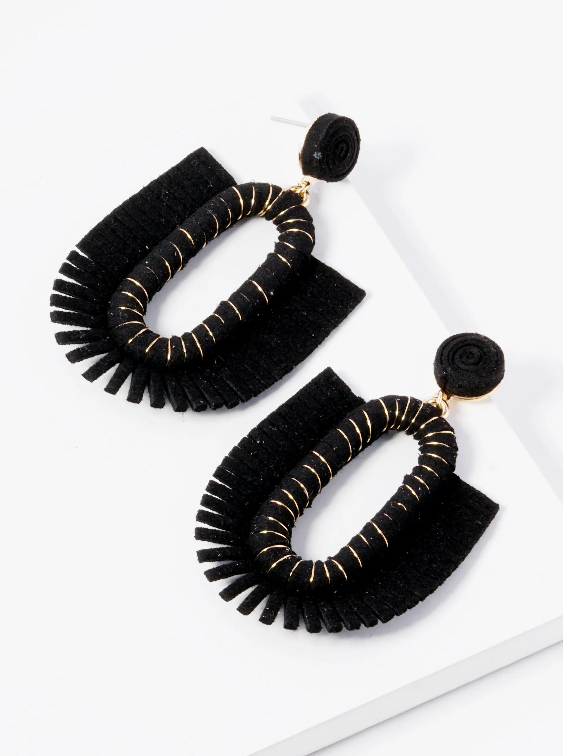 These Must-have Post Earrings Are Handcrafted With Textured Suede And Beautiful Fringe. The Classic Colors Of Black And Brown Make Them Easy To Pair With Any Outfit Throughout The Year.