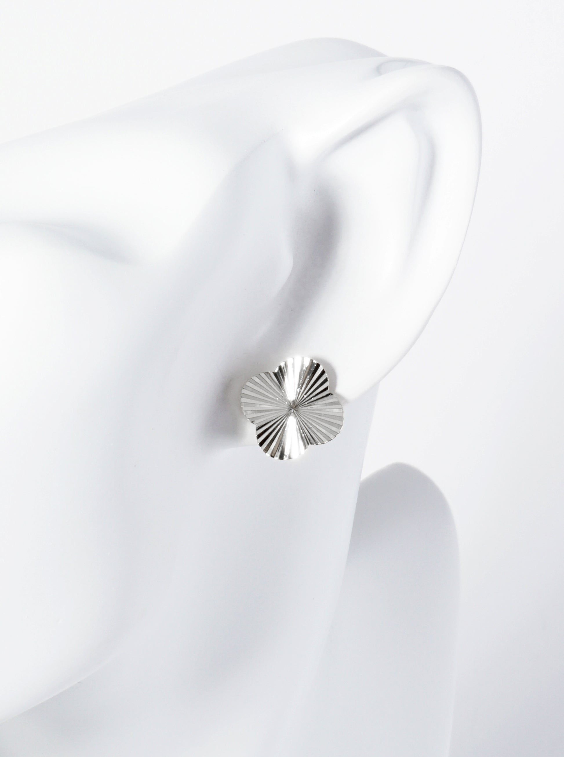 The Quatrefoil Shape Is Adorned With A Captivating Starburst Texture That Creates A Dazzling Effect, Catching And Reflecting Light With Every Movement. The Classic Stud Setting Ensures A Versatile And Timeless Look, Perfect For Adding A Touch Of Elegance To Both Everyday Outfits And Special Occasions.