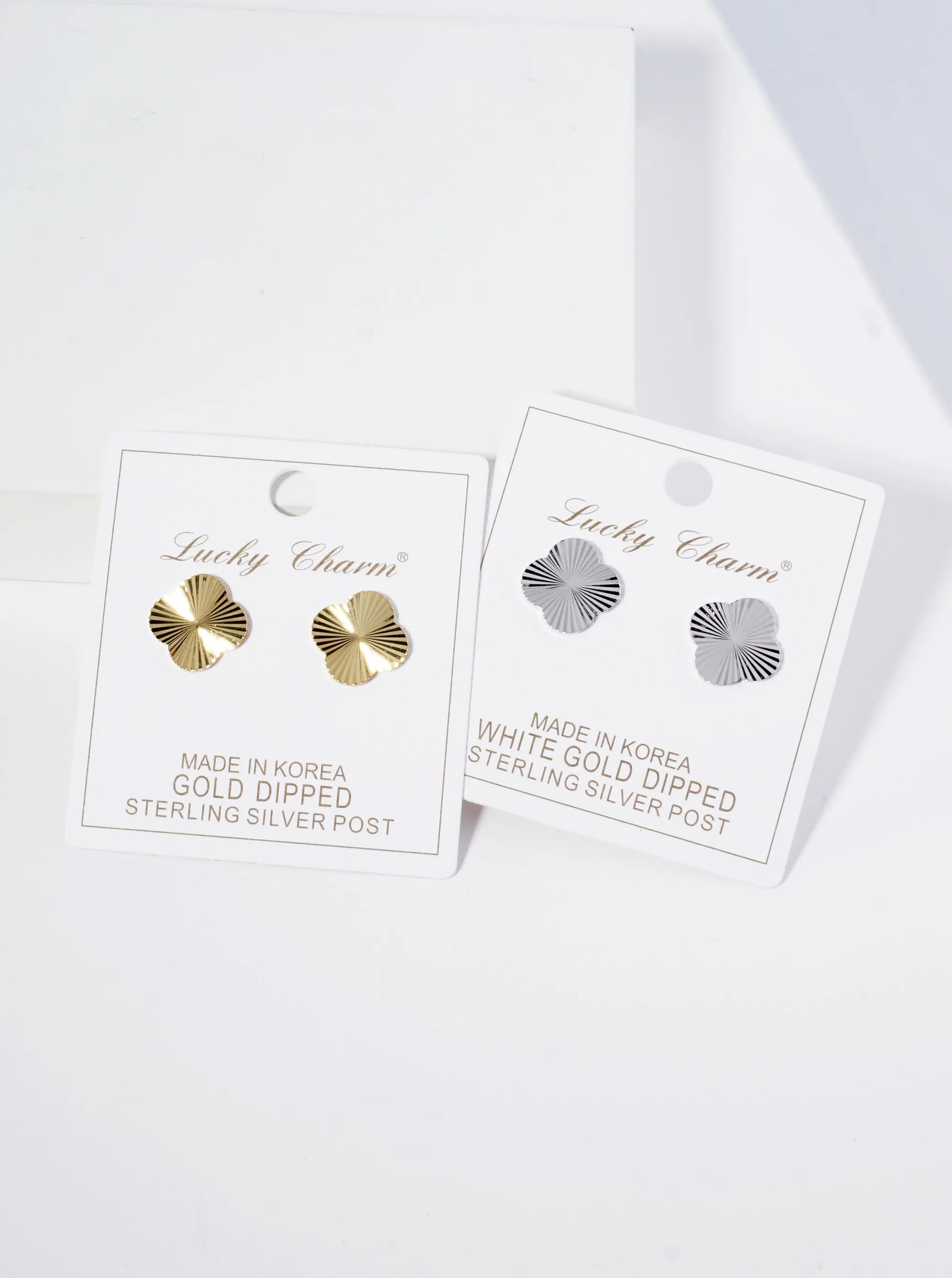 Sunburst Texture 14mm Quatrefoil 18K Gold Dipped Stud Earrings