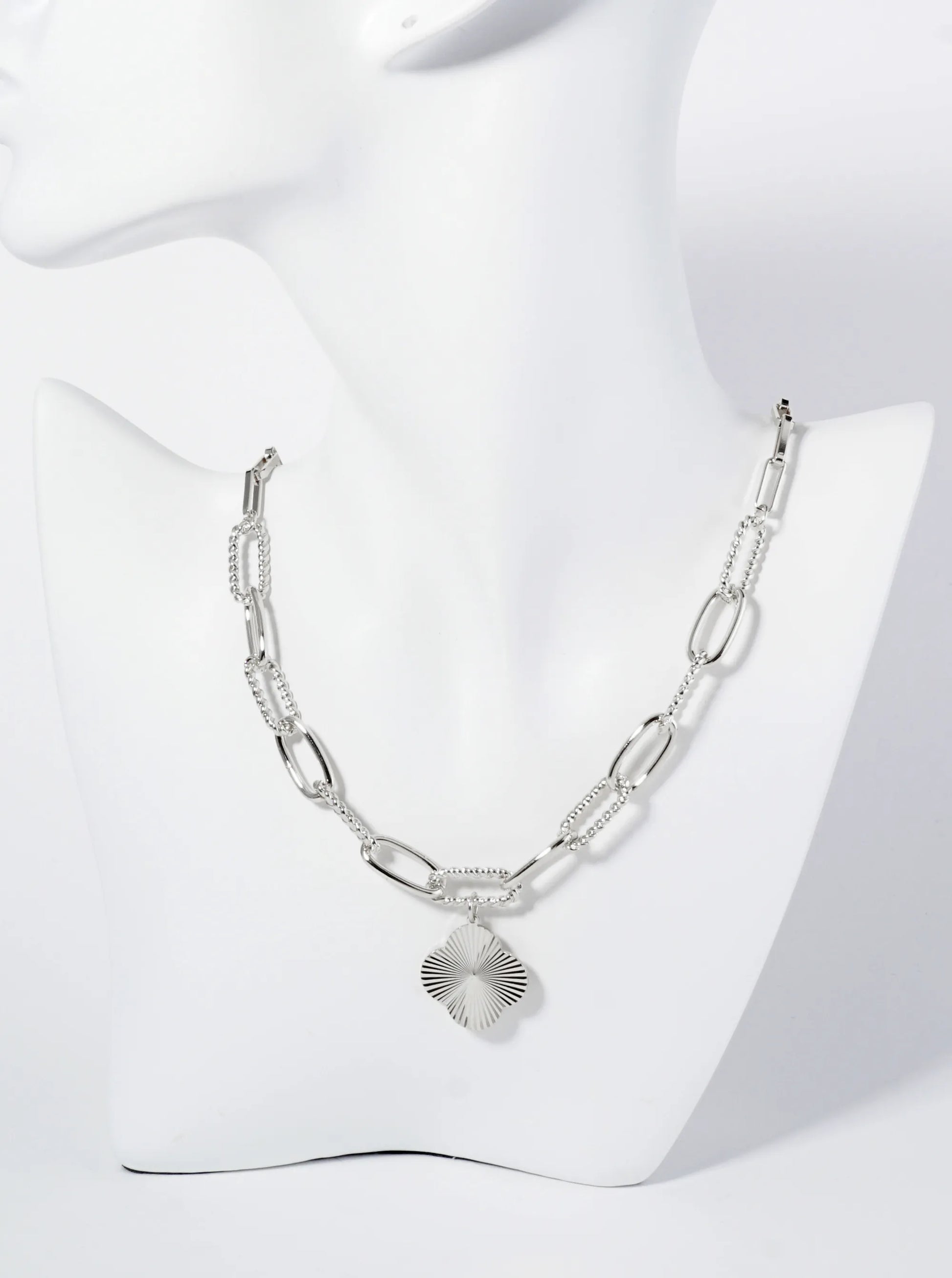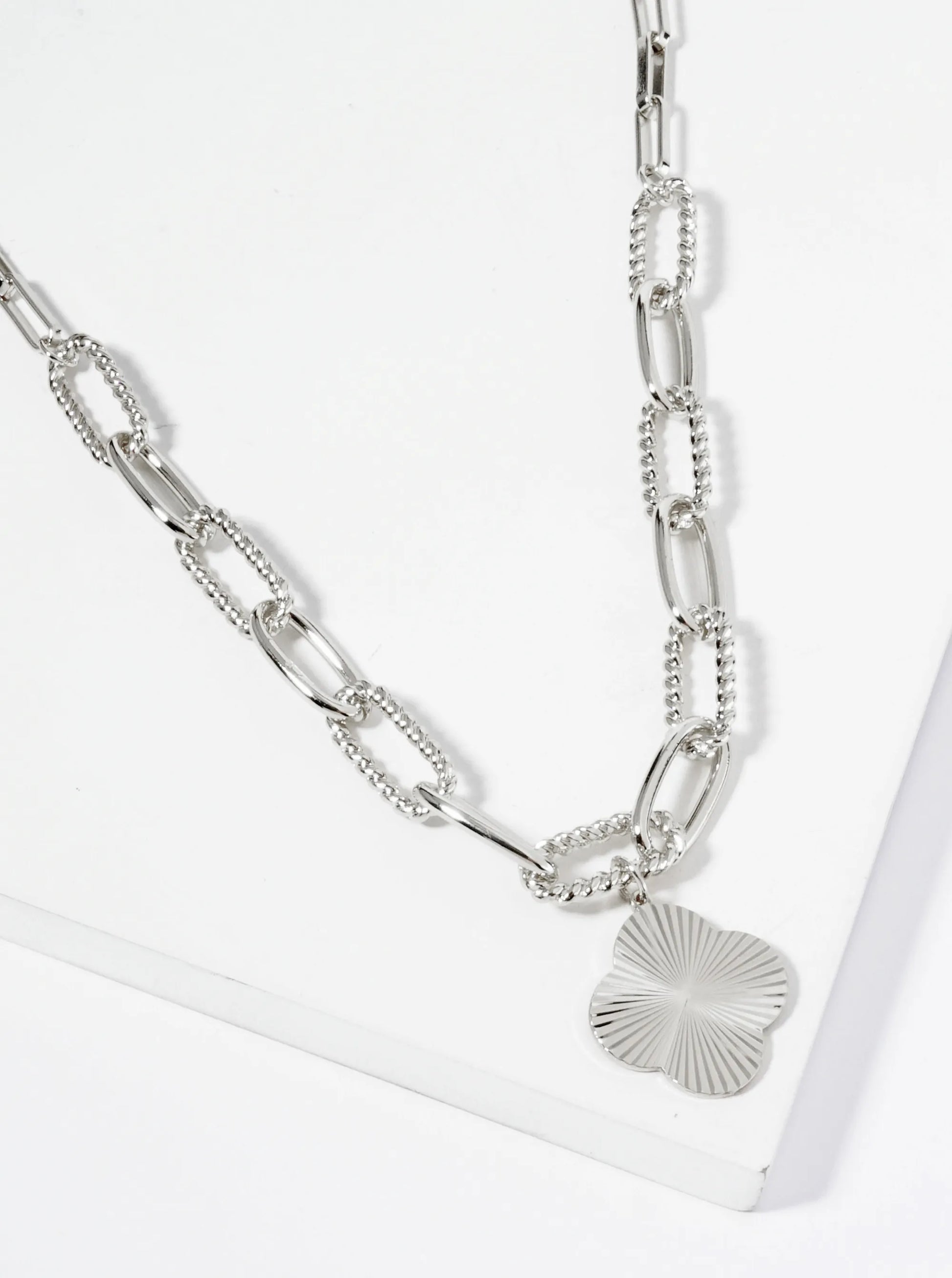 Sunburst Texture Quatrefoil Pendant 18K Gold Dipped Link Chain Necklace
