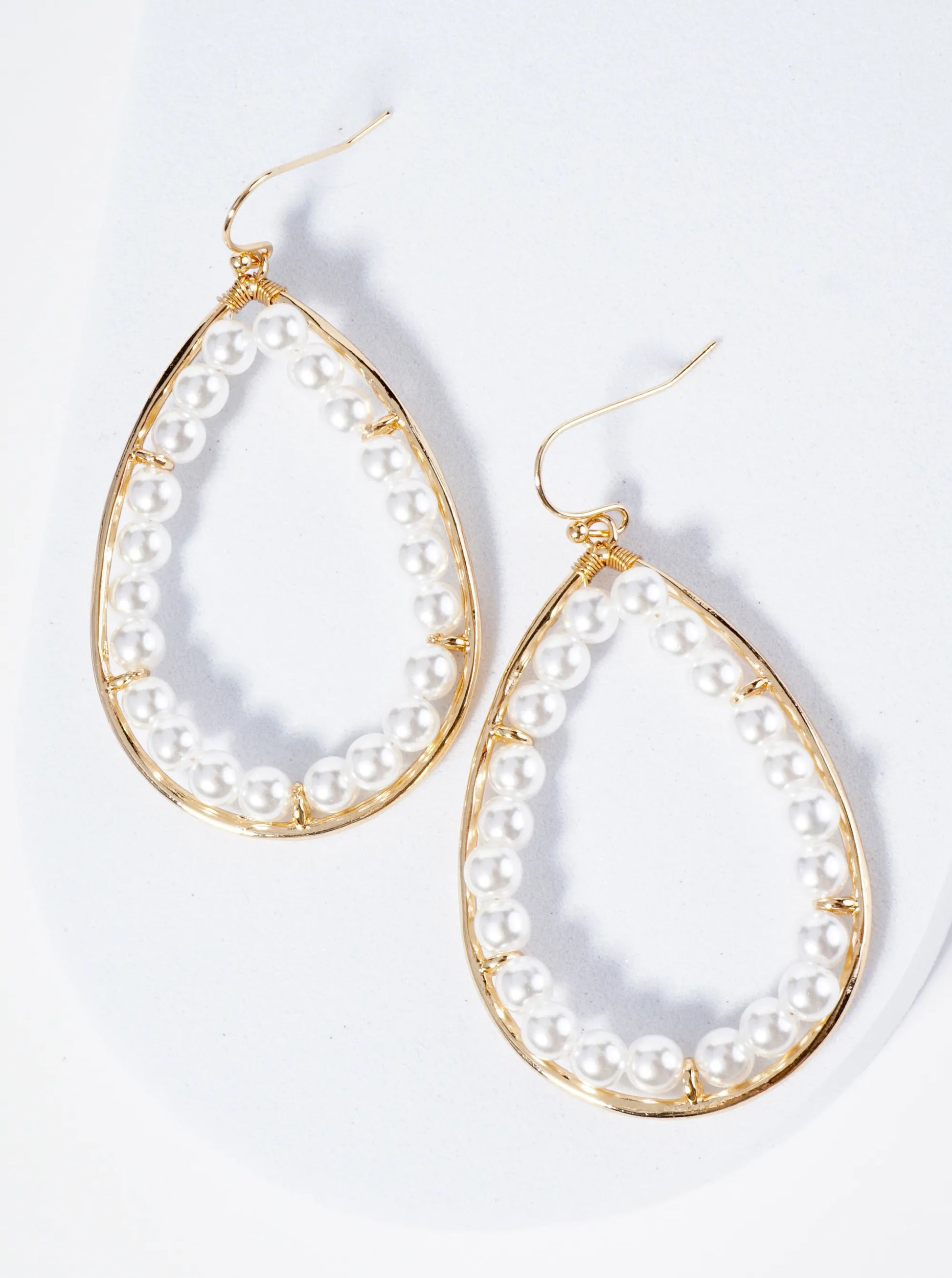 Teardrop Earrings With Pearl Beads Wrapped Inside