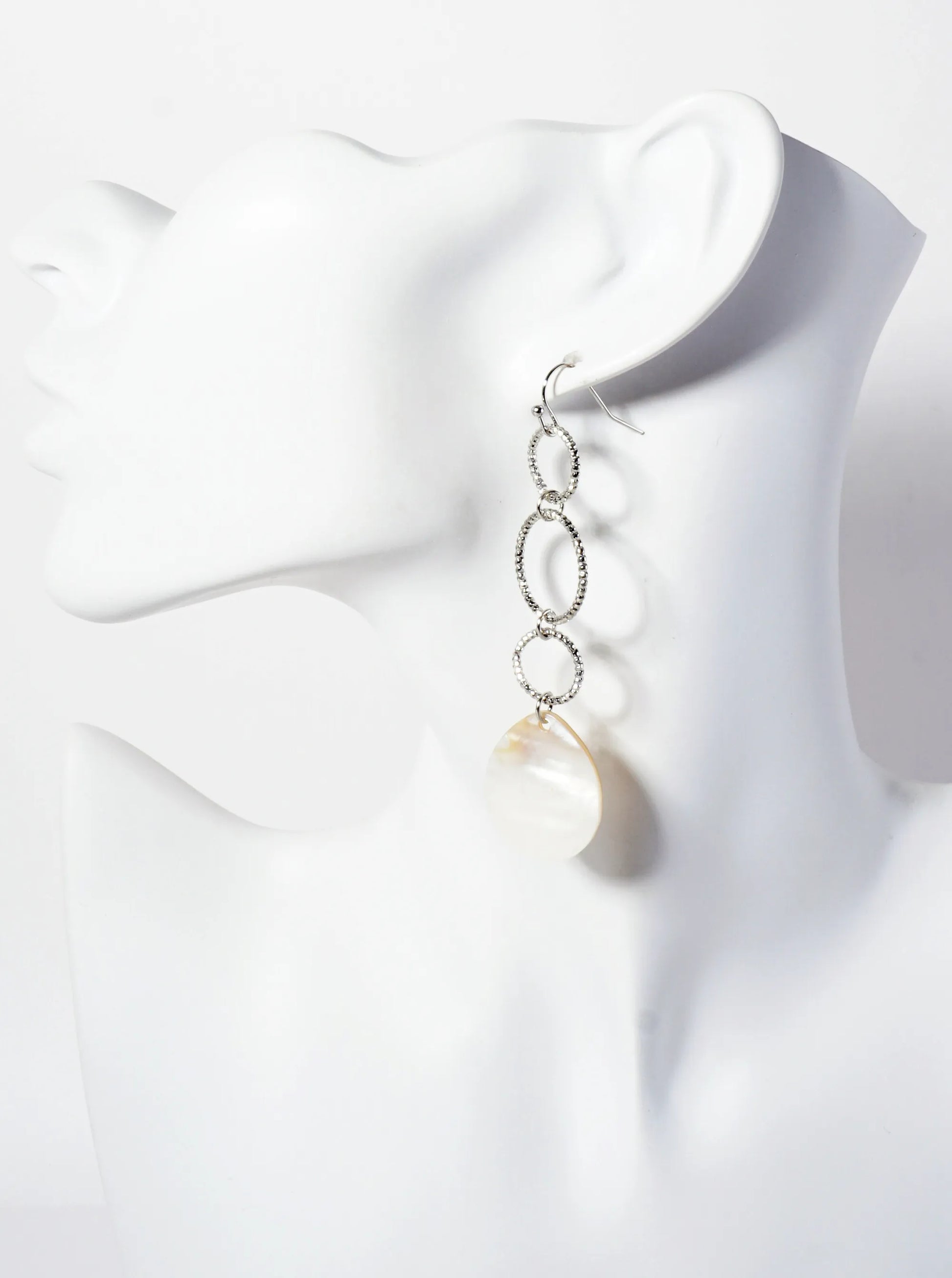 Teardrop Mother-of-Pearl Textured Three Circle Dangle Earrings