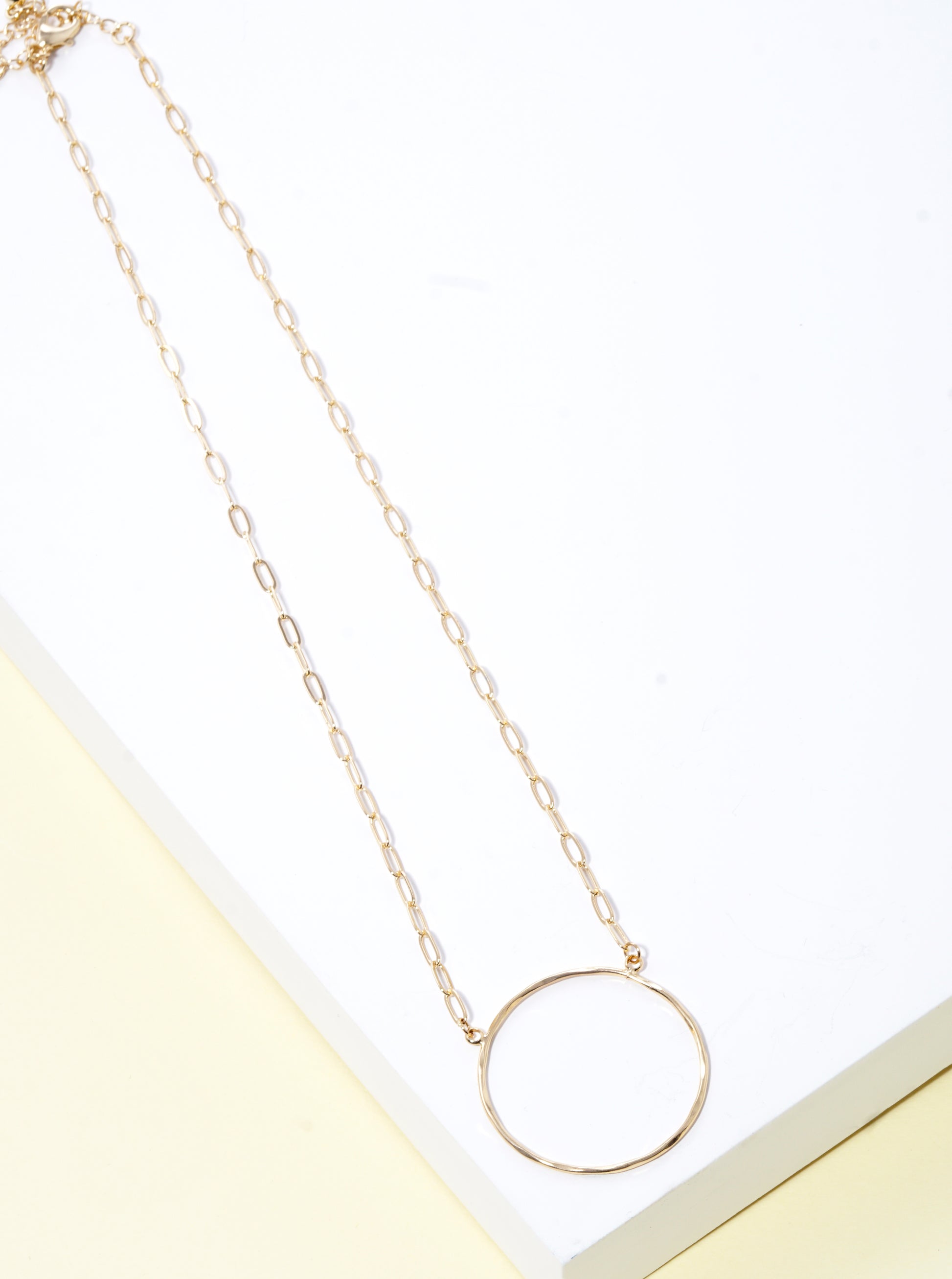 Textured Brass Wire Circle Pendant Necklace