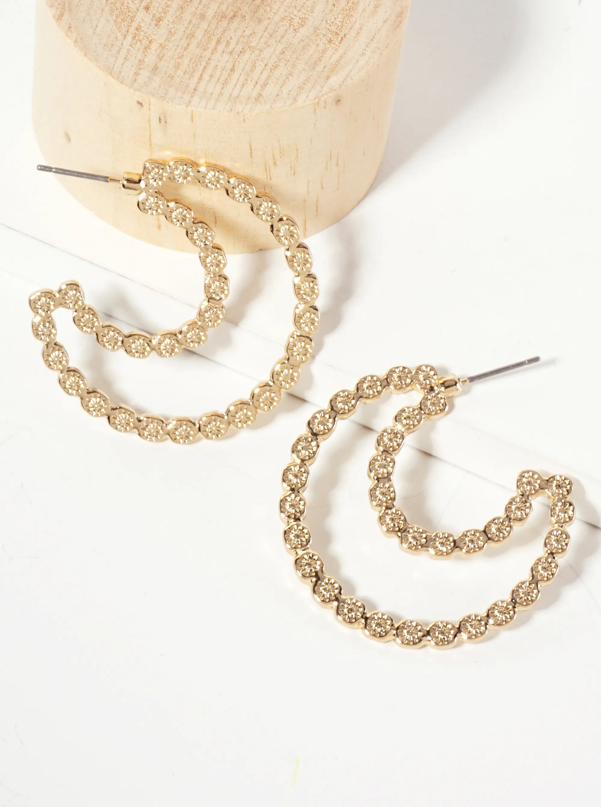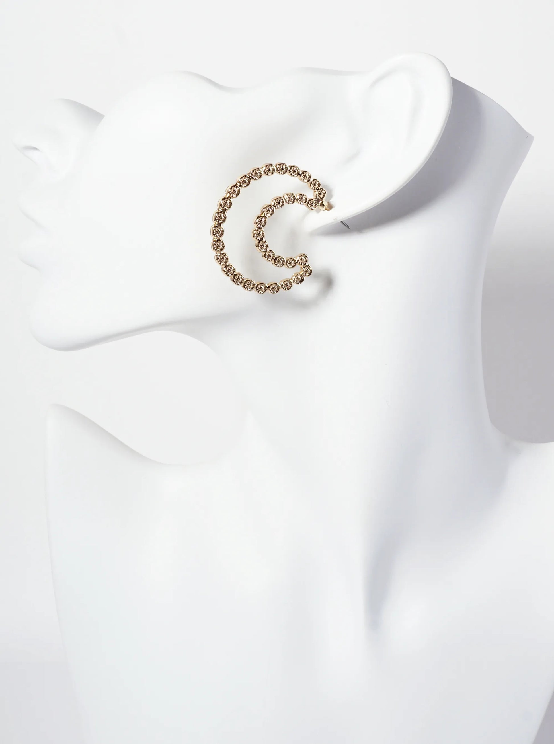 Textured Crescent Moon-Shape 35mm Open Hoop Earrings