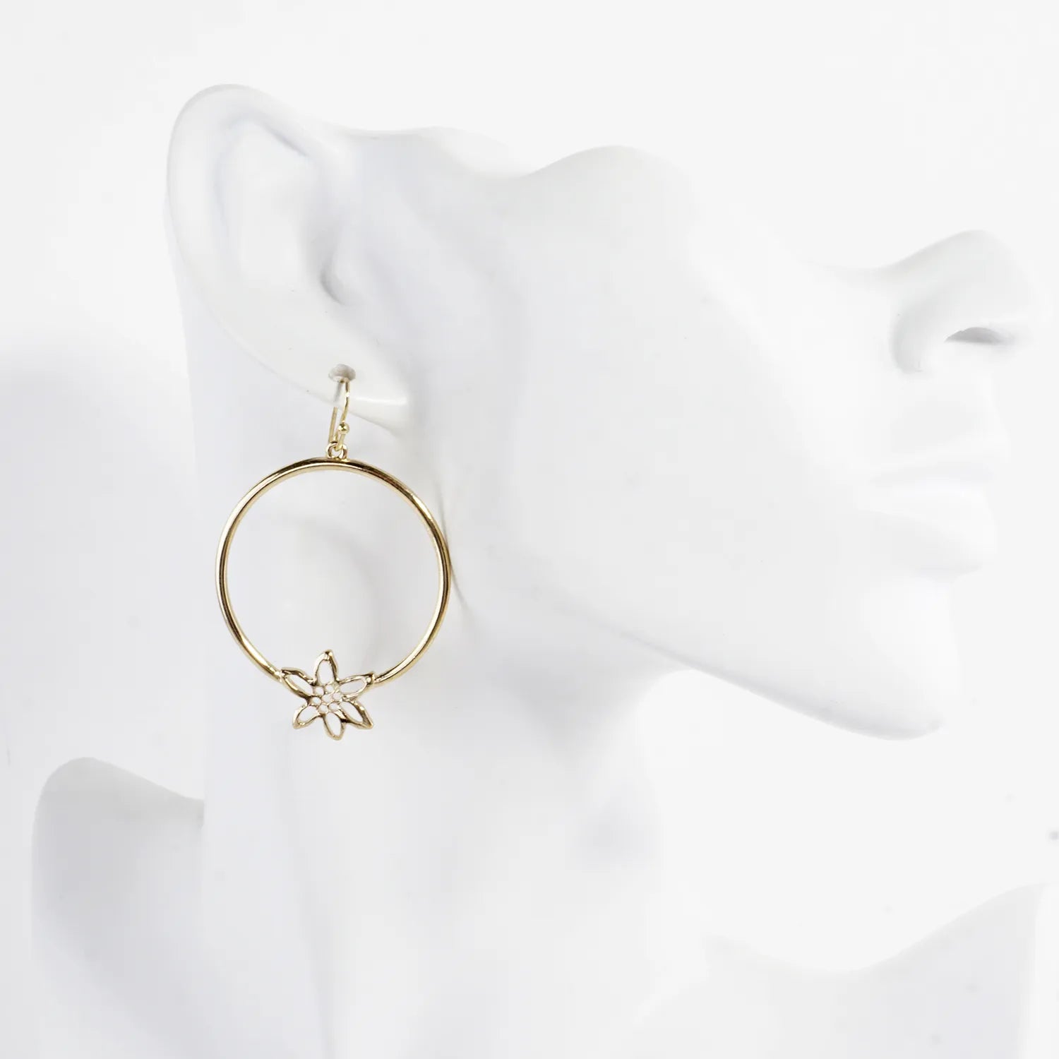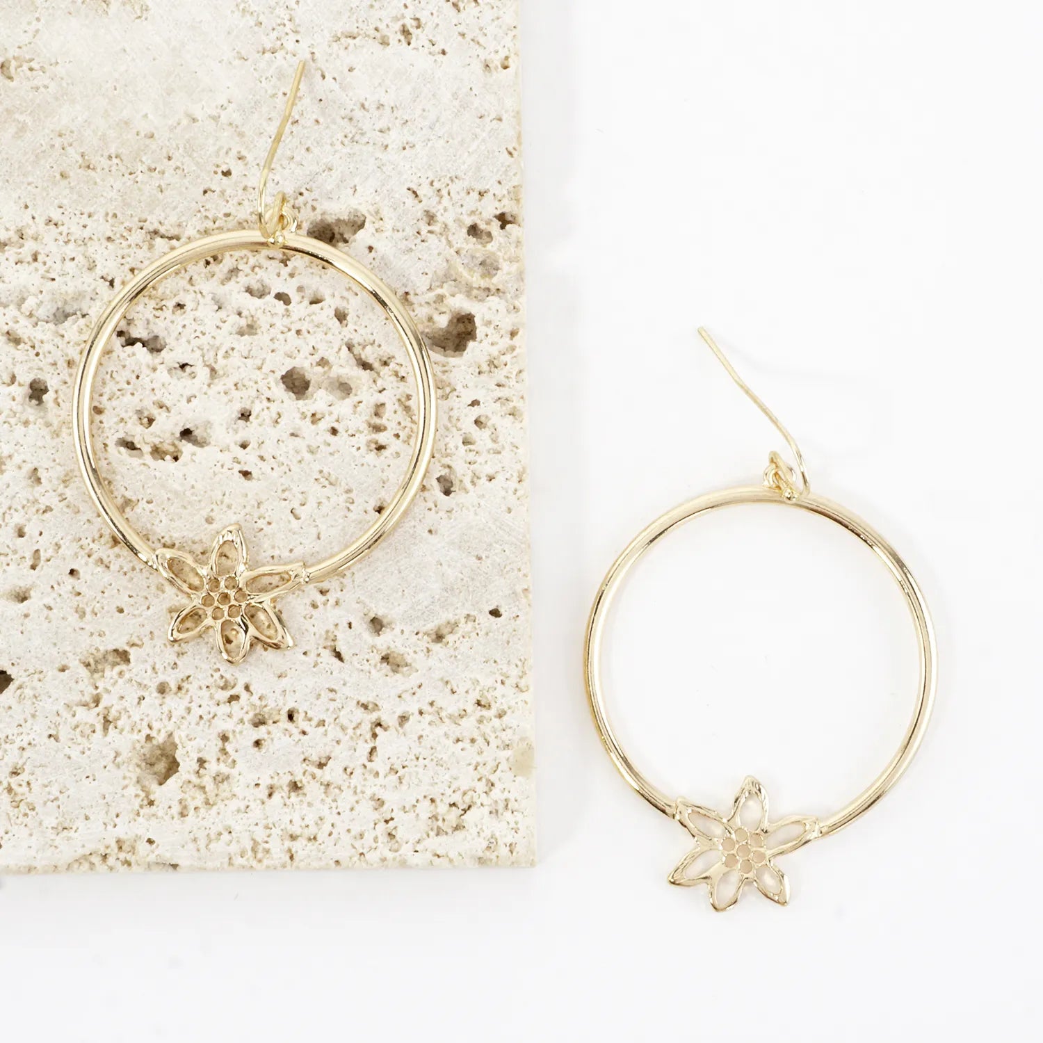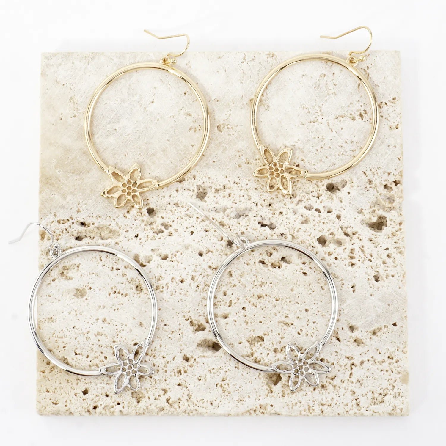Feminine With A Modern Twist, The Textured Flower Accent Circle Drop Earrings Bring Soft Charm And Artisanal Detail To Any Look. Featuring An Open Circle Drop With A Delicately Textured Surface, Each Earring Is Finished With A Dainty Floral Accent That Adds A Fresh, Elegant Touch. Lightweight Yet Eye-catching, They Strike The Perfect Balance Between Casual And Dressy Styling.