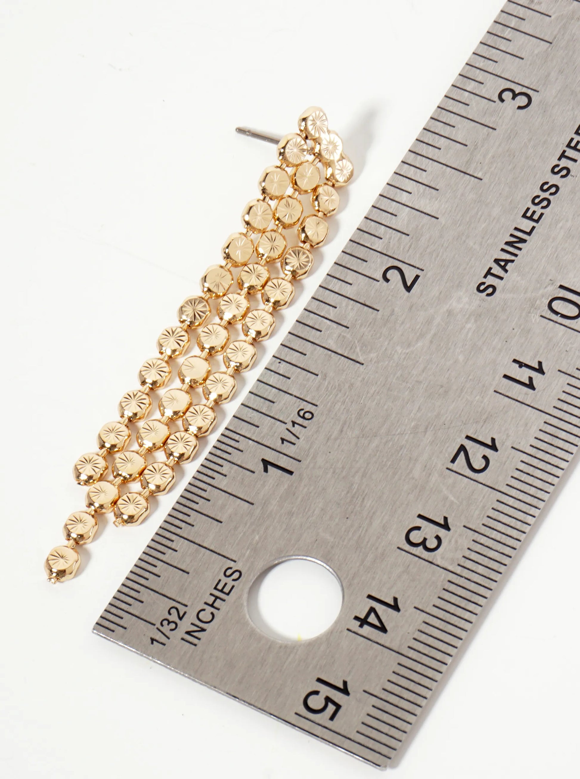Textured Linear Triple-Strand Brass Dangle Earrings