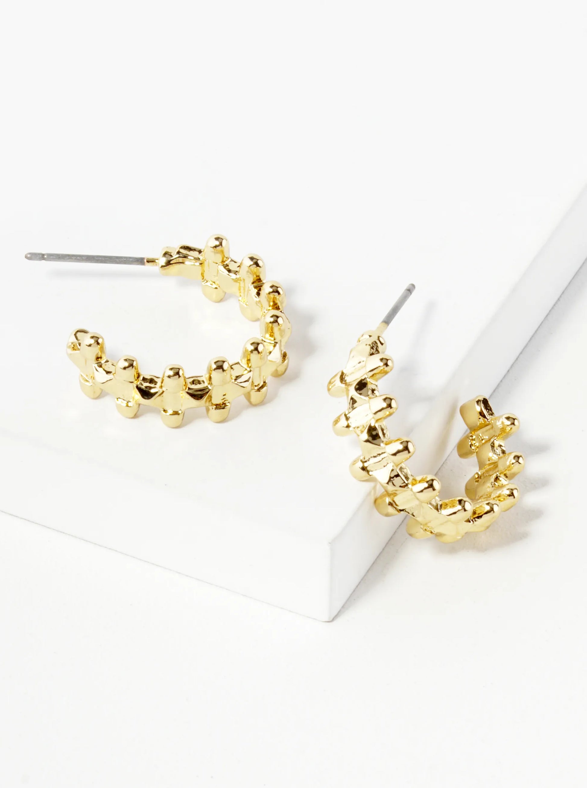 These Earrings Are Designed In A Classic Hoop Style, Forming Complete Or Partial Circles. The Small Size And Textured Surface Give Them A Delicate And Stylish Appearance.