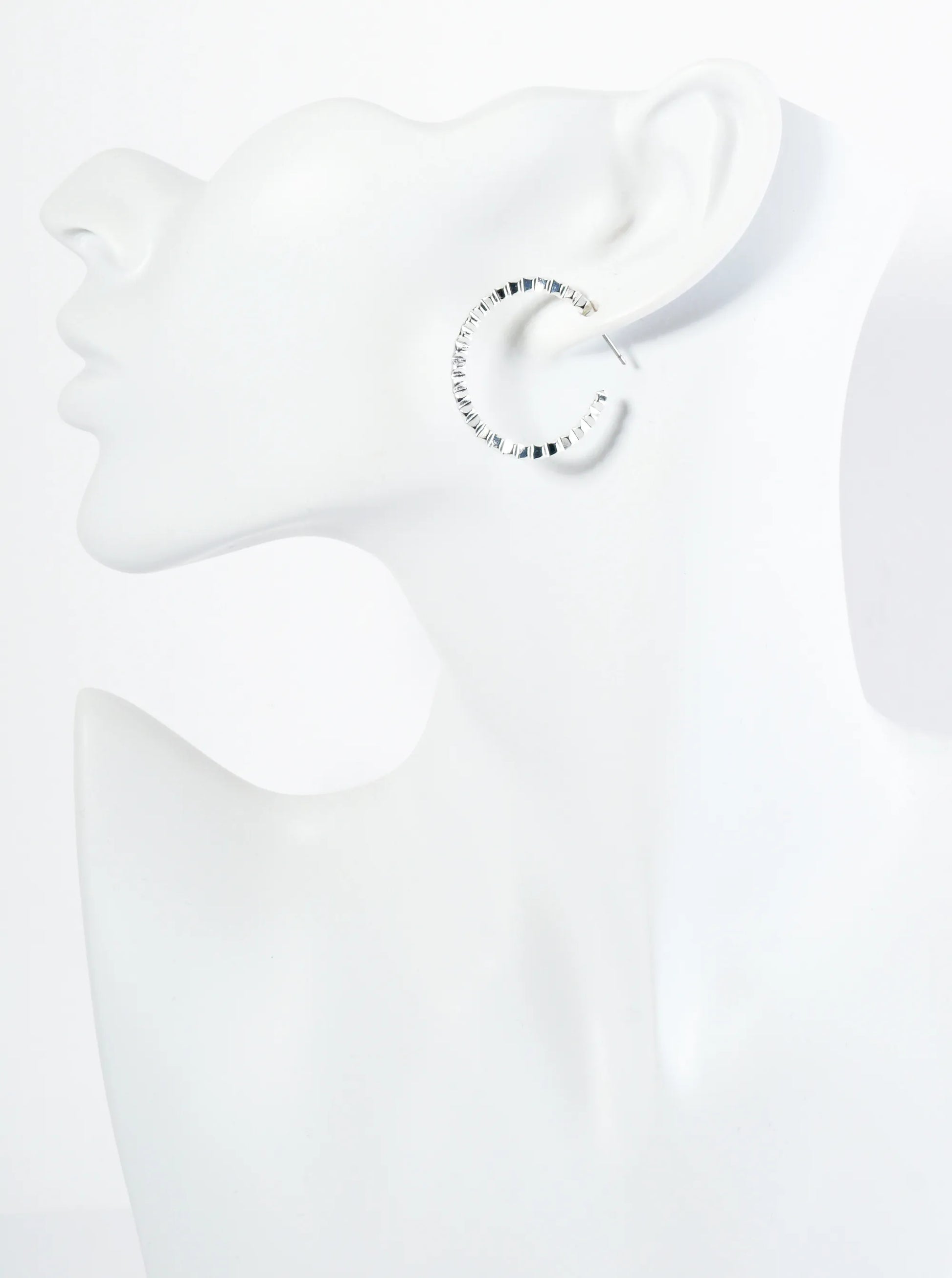 Crafted From High-quality Metal, These Hoops Are Adorned With A Textured Finish That Adds Depth And Visual Interest. The Intricate Texture Creates A Beautiful Interplay Of Light And Shadow, Giving The Earrings A Dynamic Look As They Move. This Design Detail Elevates The Classic Hoop, Making It A Standout Piece In Any Jewelry Collection.