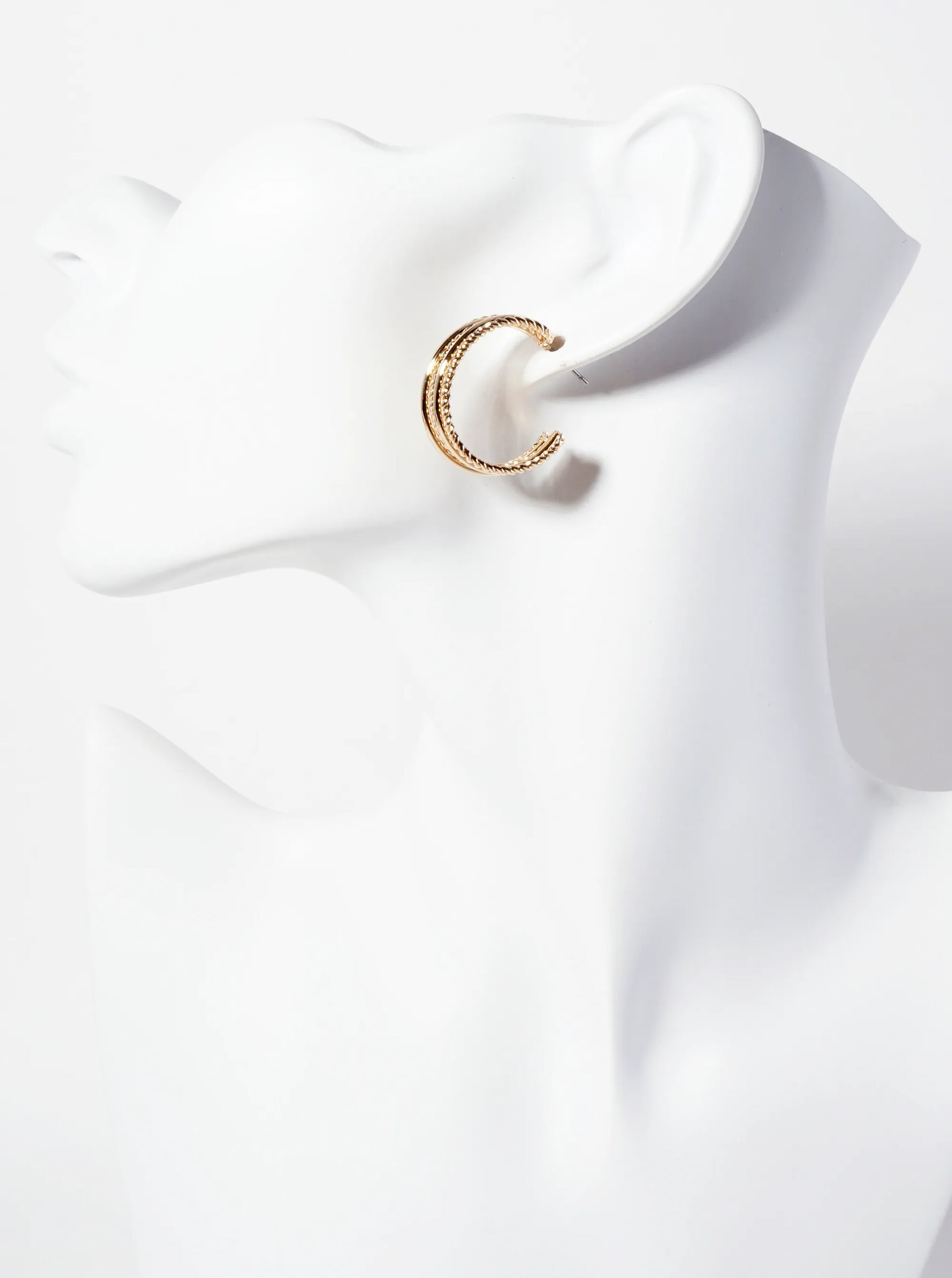 The Earrings Feature A Bold And Stylish Design With A Modern Twist On The Classic Hoop Earring. These 30mm Open Hoops Are Crafted From Textured Metal, Which Gives Them A Unique, Tactile Finish That Catches The Light In Intriguing Ways. The Textured Surface Adds Depth And Character, Creating A More Dynamic Look Compared To Smooth, Polished Hoops. Their Medium Size Makes Them Versatile, Offering Just The Right Balance Of Boldness And Elegance. Perfect For Adding A Touch Of Sophistication To Both Everyday Outfits And Evening Wear, These Earrings Are A Must-have For Those Who Appreciate Both Modern Design And Timeless Appeal.