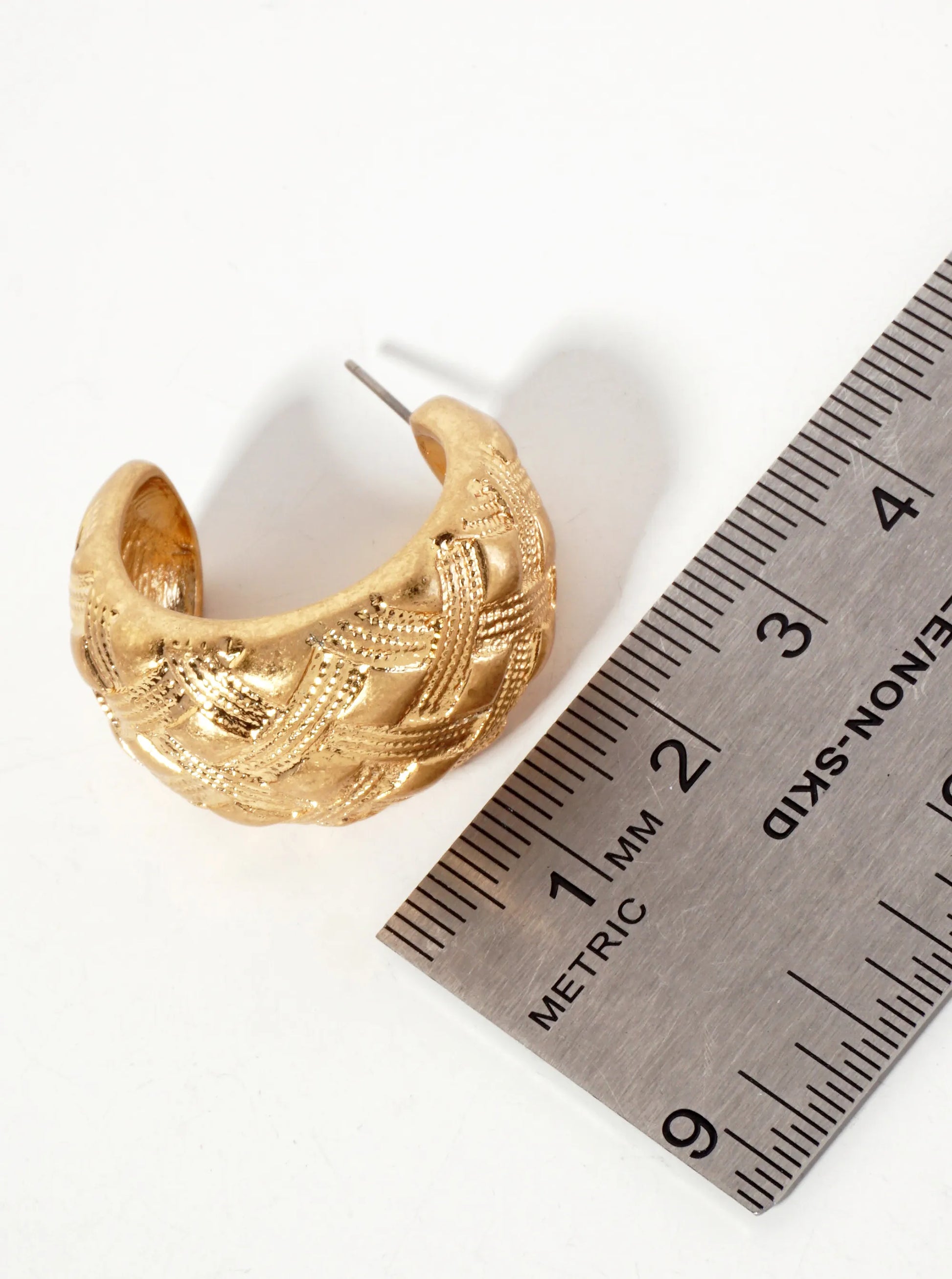 These Earrings Featuring A 30mm-wide Hoop Design With An Intricate Textured Metal Finish, Adding Depth And Visual Interest. These Earrings Offer A Bold Yet Elegant Look, Combining Modern Sophistication With A Unique Tactile Element. Secured With Titanium Posts, They Ensure A Comfortable, Lightweight Fit, Making Them A Versatile Accessory Perfect For Any Occasion.
