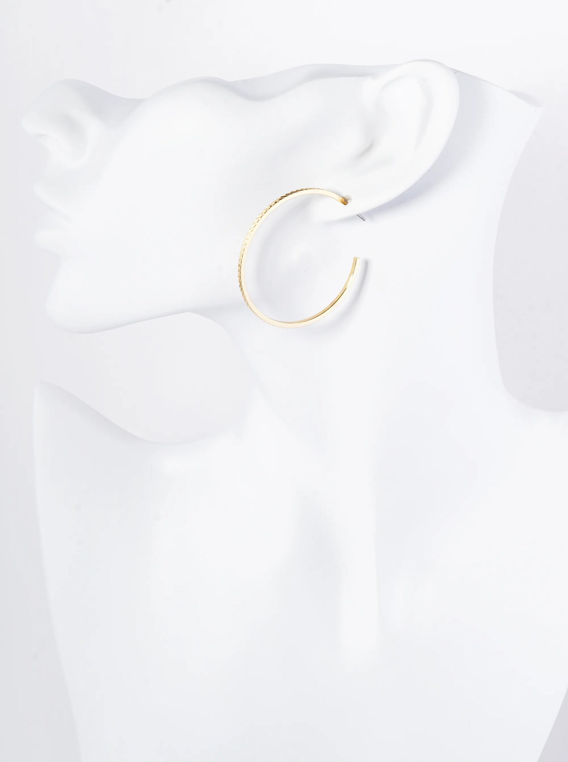 Textured Metal 40mm Lightweight Skinny Open Hoop Earrings