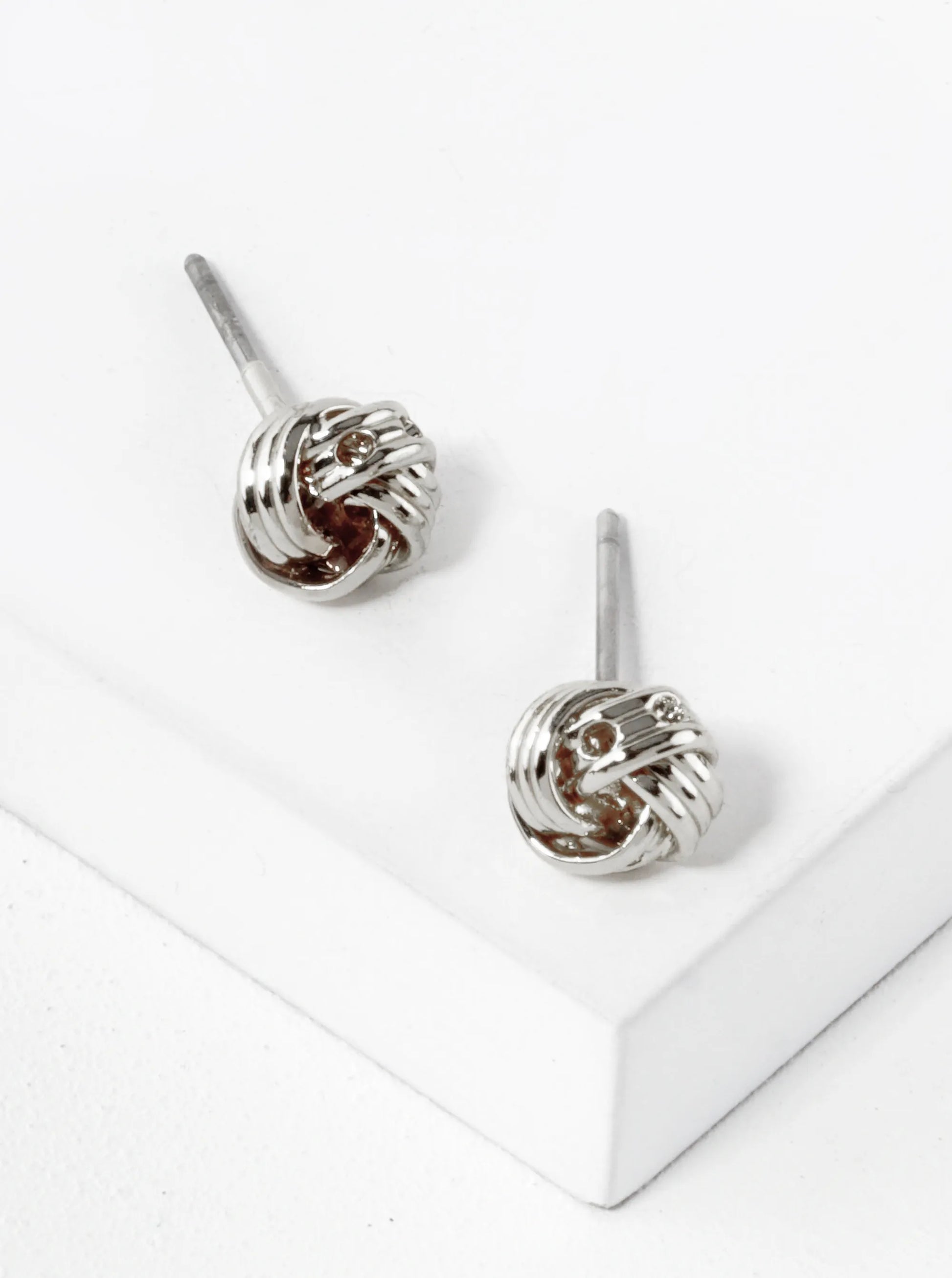 Textured Metal 6mm Dainty Love Knot Stud Earrings