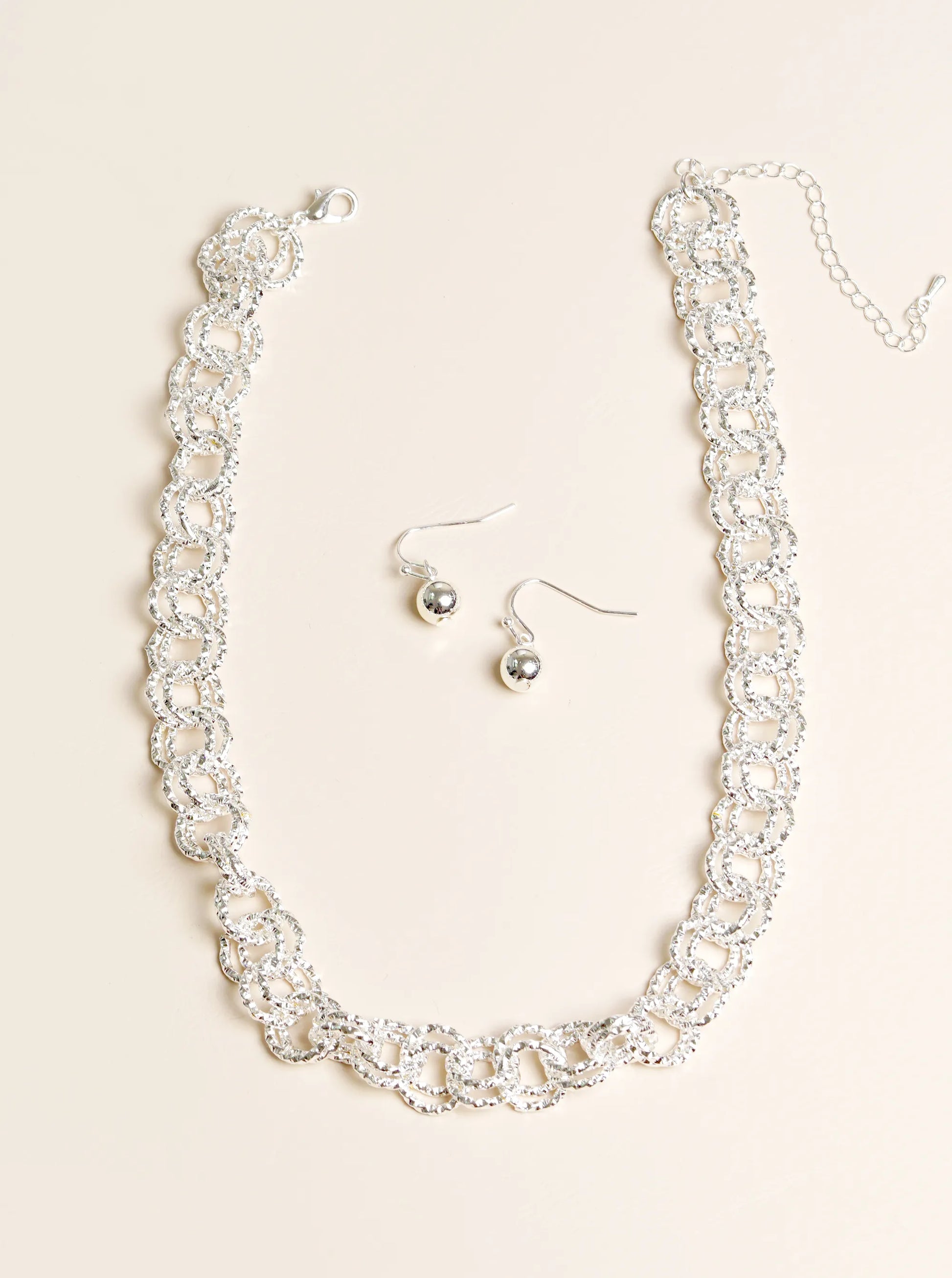 Textured Metal Chino Link Chain 16 Inch Necklace With Earrings Set