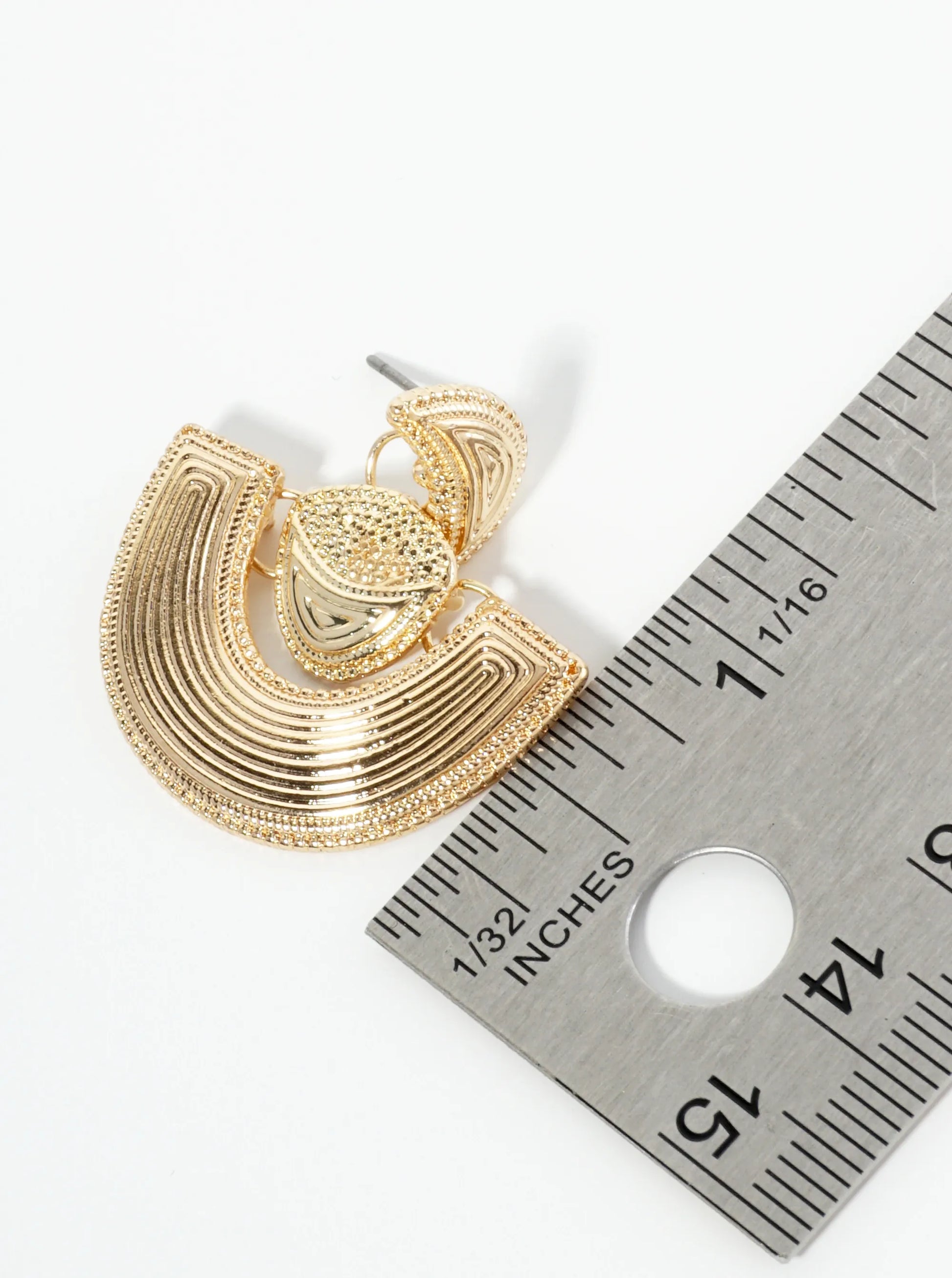 Textured Metal Fan Shape Dangle Post Earrings