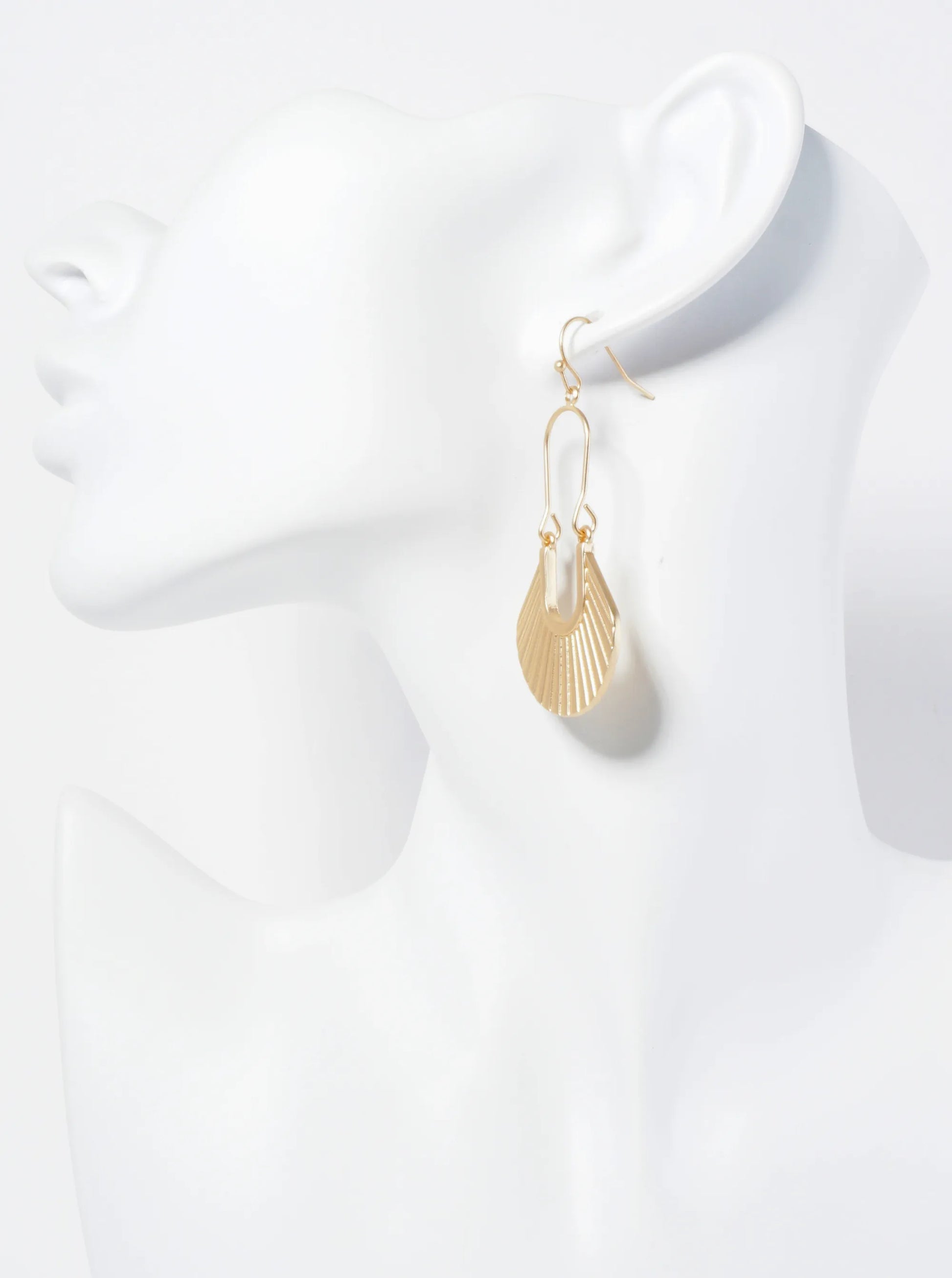 Textured Metal Fan Shape Geometric Dangle Earrings