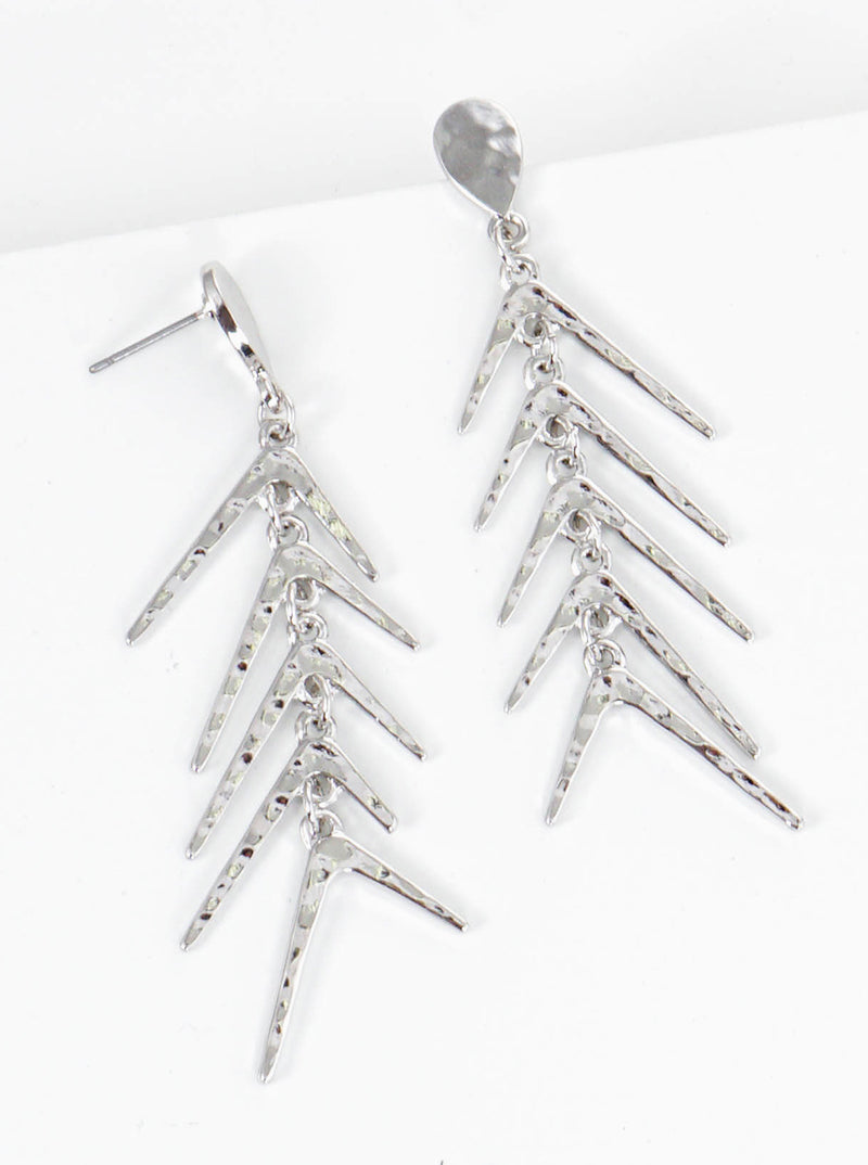 Textured Metal Fishbone Post Dangle Earrings