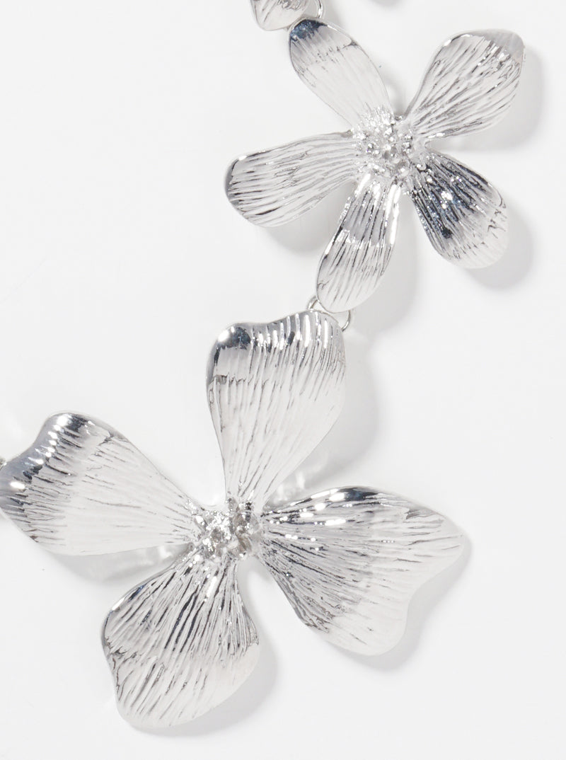 Textured Metal Floral Flower Chunky Necklace