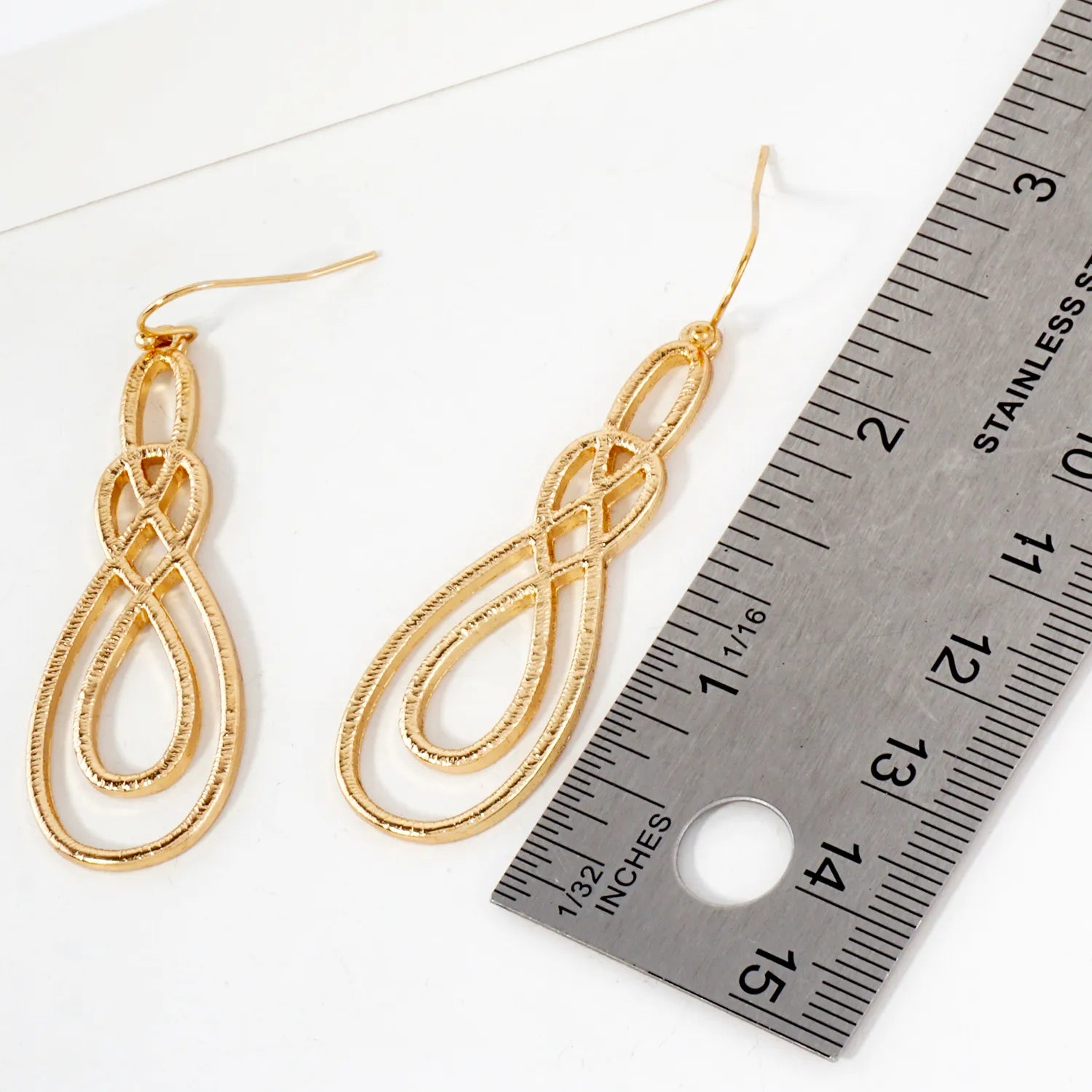 Symbolic And Stylish, These Textured Metal Intertwined Infinity Dangle Earrings Feature Two Layered Infinity Loops With A Rich, Hammered Texture For Added Depth And Shine. The Intertwined Design Adds Dimension And Movement, While The Subtle Texture Catches Light Beautifully—ideal For Adding Sophistication To Everyday Looks.