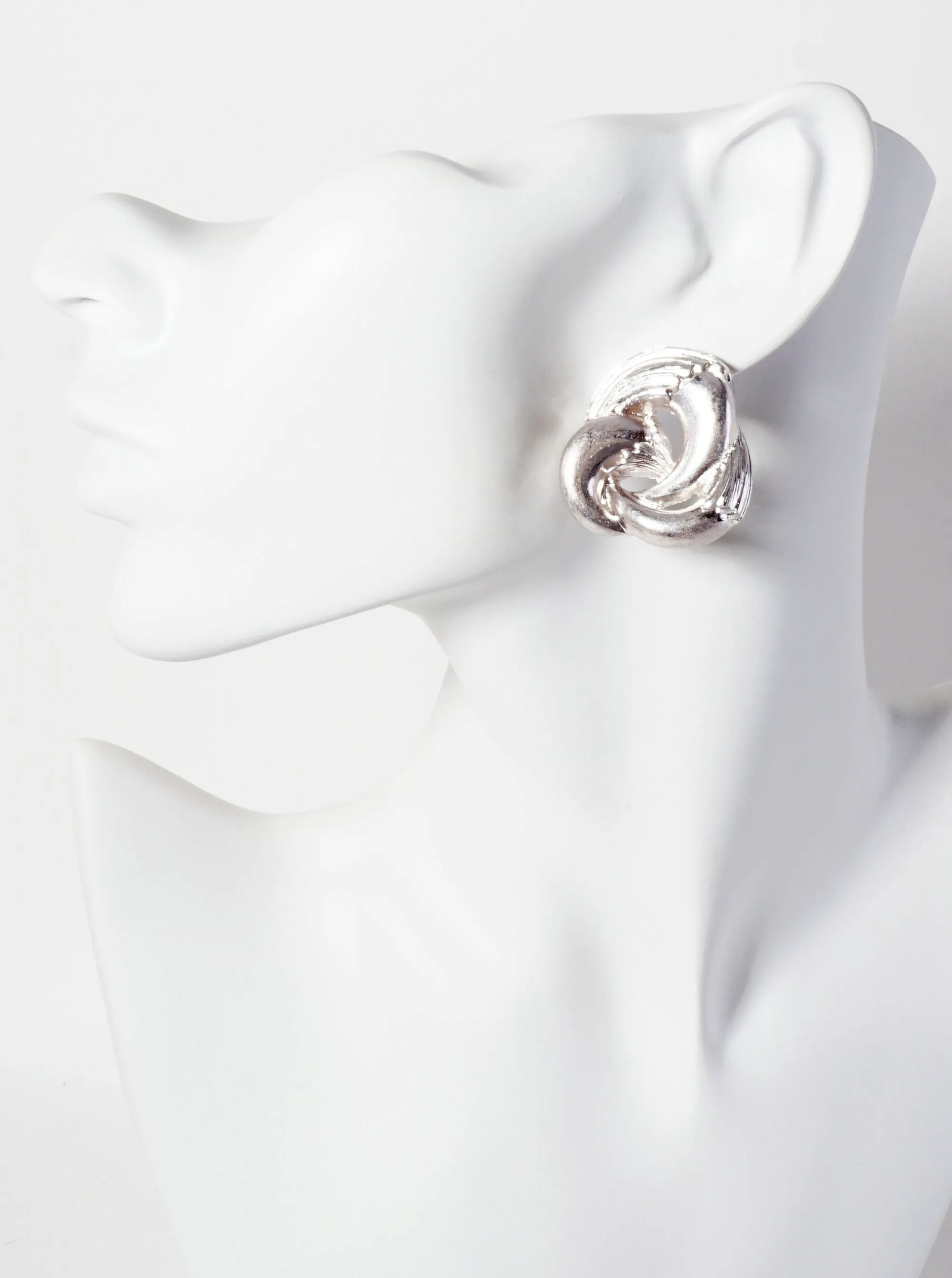 These Earrings A Bold, Intricate Knot Design Crafted From Textured Metal That Adds Depth And Dimension. These Earrings Make A Striking Statement With Their Modern, Sculptural Shape And Unique Texture, Offering An Eye-catching, Sophisticated Look. Secured With Titanium Posts, They Ensure A Comfortable And Durable Fit, Perfect For Adding An Elegant Yet Edgy Touch To Any Outfit.