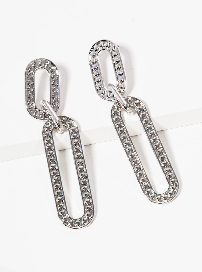 Textured Metal Link Chain Post Drop Earrings