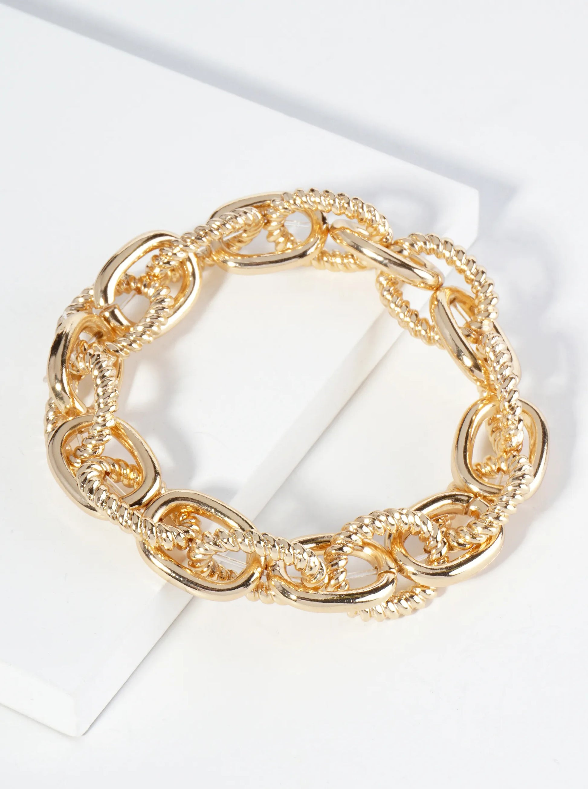 This Bracelet Features Interlocking Metal Links That Create A Chain-like Appearance. Each Link Is Meticulously Crafted To Showcase Intricate Textures, Adding Depth And Visual Interest To The Piece.