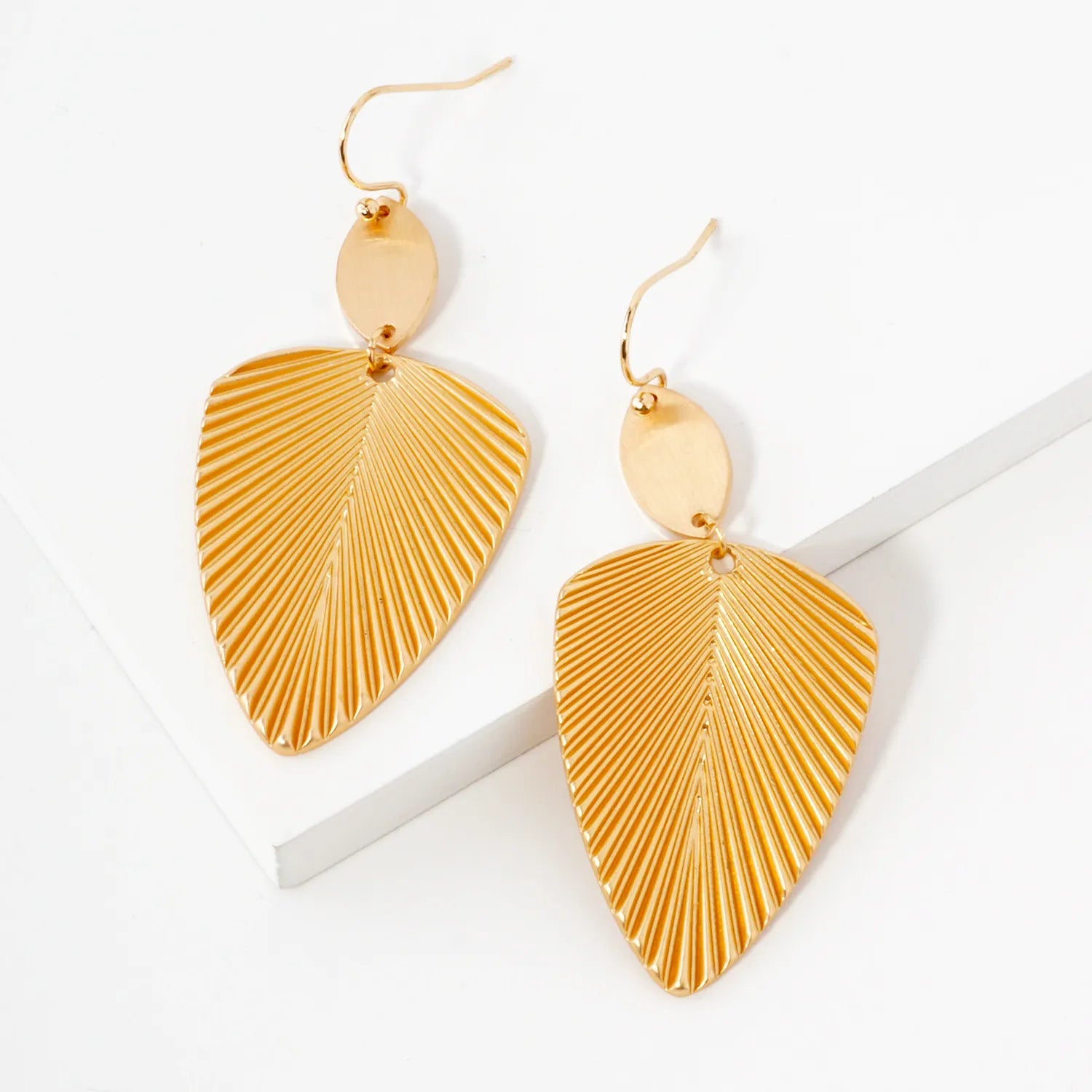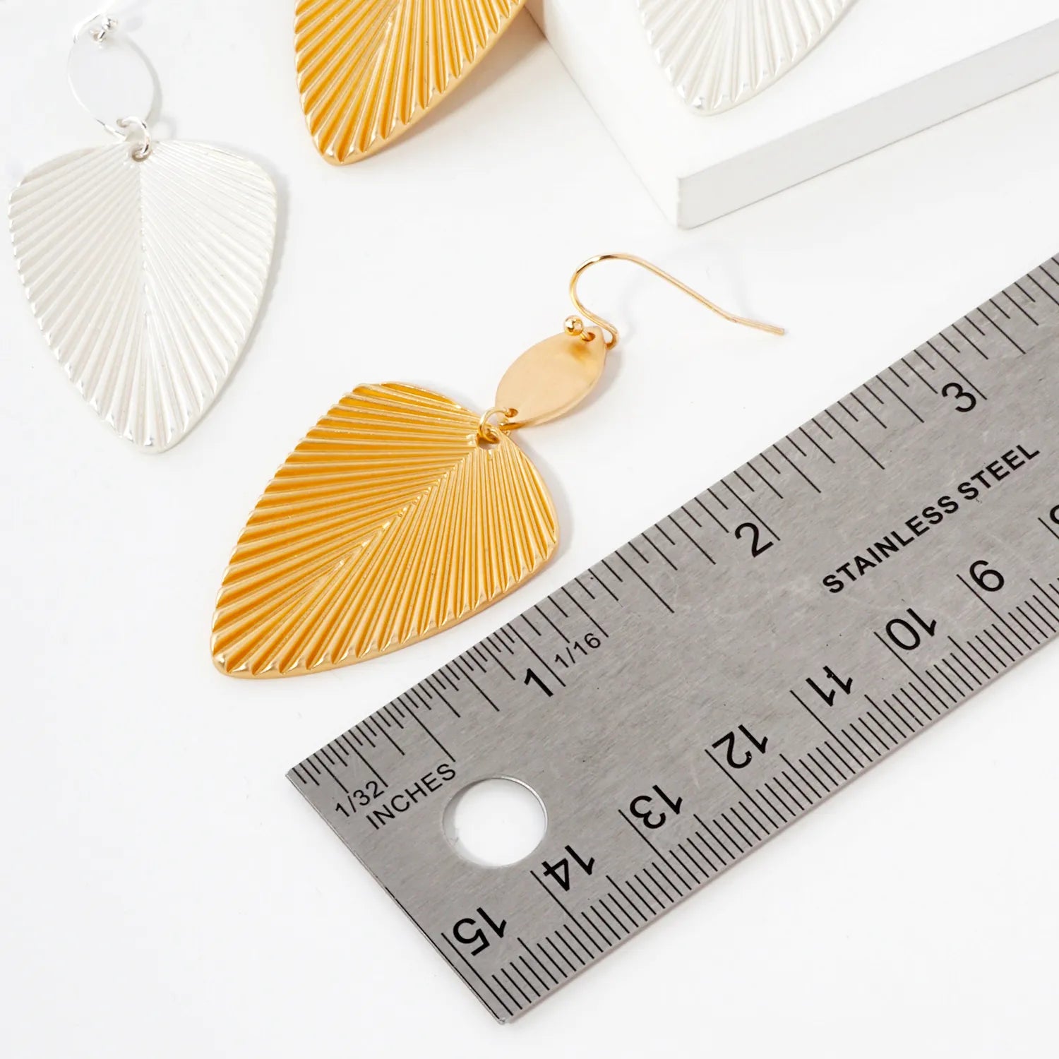 Graceful And Eye-catching, These Textured Metal Marquise Leaf Drop Earrings Bring A Refined, Nature-inspired Accent To Your Accessory Collection. Shaped Like Elongated Leaves (or Marquise Forms), Each Earring Features Delicate Etched Or Hammered Textures That Shimmer With Movement. Perfect For Adding A Bit Of Organic Charm To Everyday Outfits Or Dressy Looks.