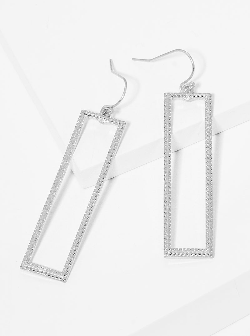Textured Metal Rectangle Bar Dangle Drop Earrings