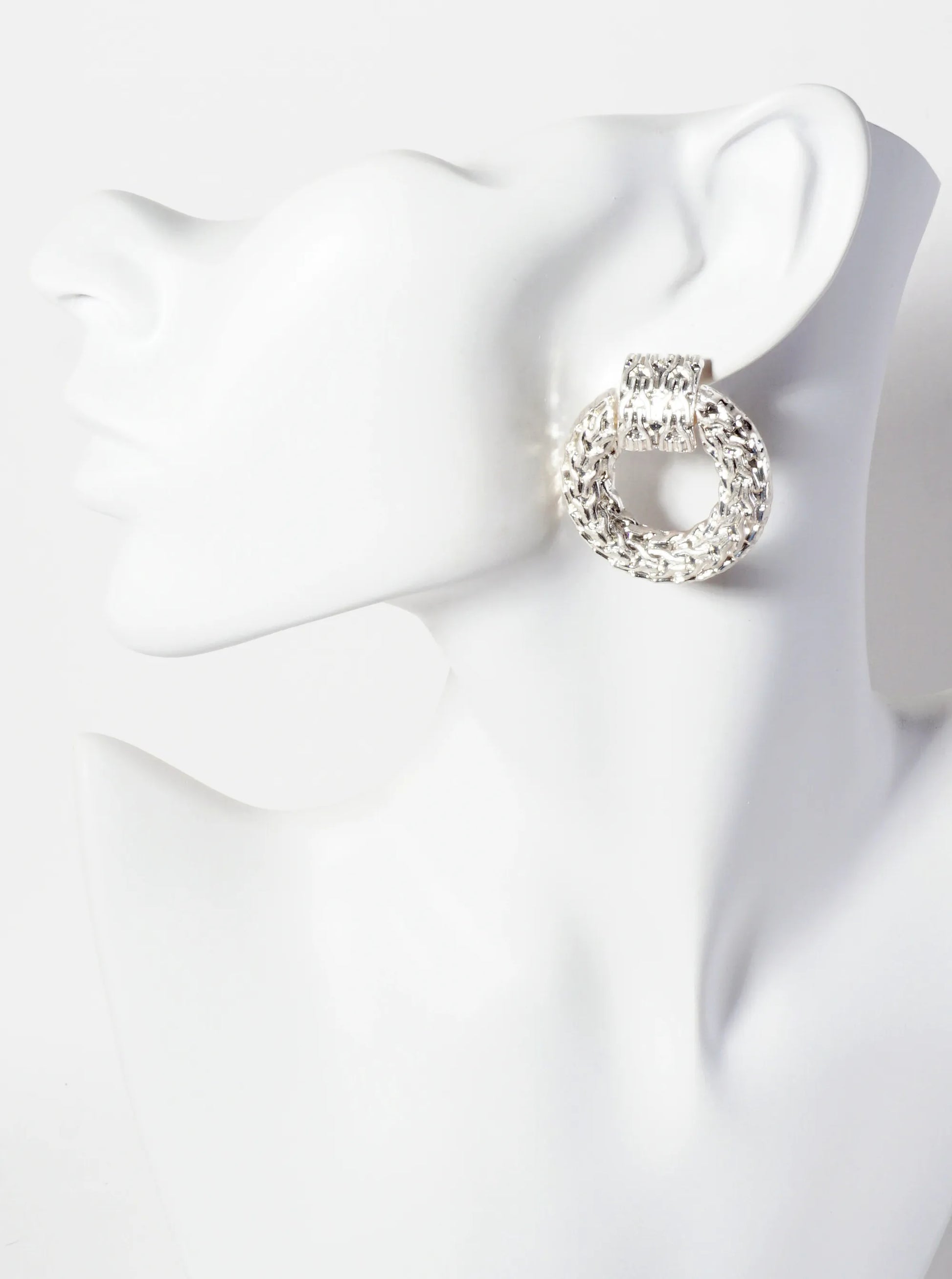 These Earrings Featuring A Bold Round Doorknocker Shape With An Intricate Textured Metal Finish That Adds Depth And Visual Interest. These Earrings Combine A Classic Design With Modern Texture, Creating A Striking Yet Sophisticated Statement. Secured With Titanium Posts, They Offer A Comfortable, Durable Fit, Making Them An Ideal Accessory For Elevating Any Look With Elegance And Edge.