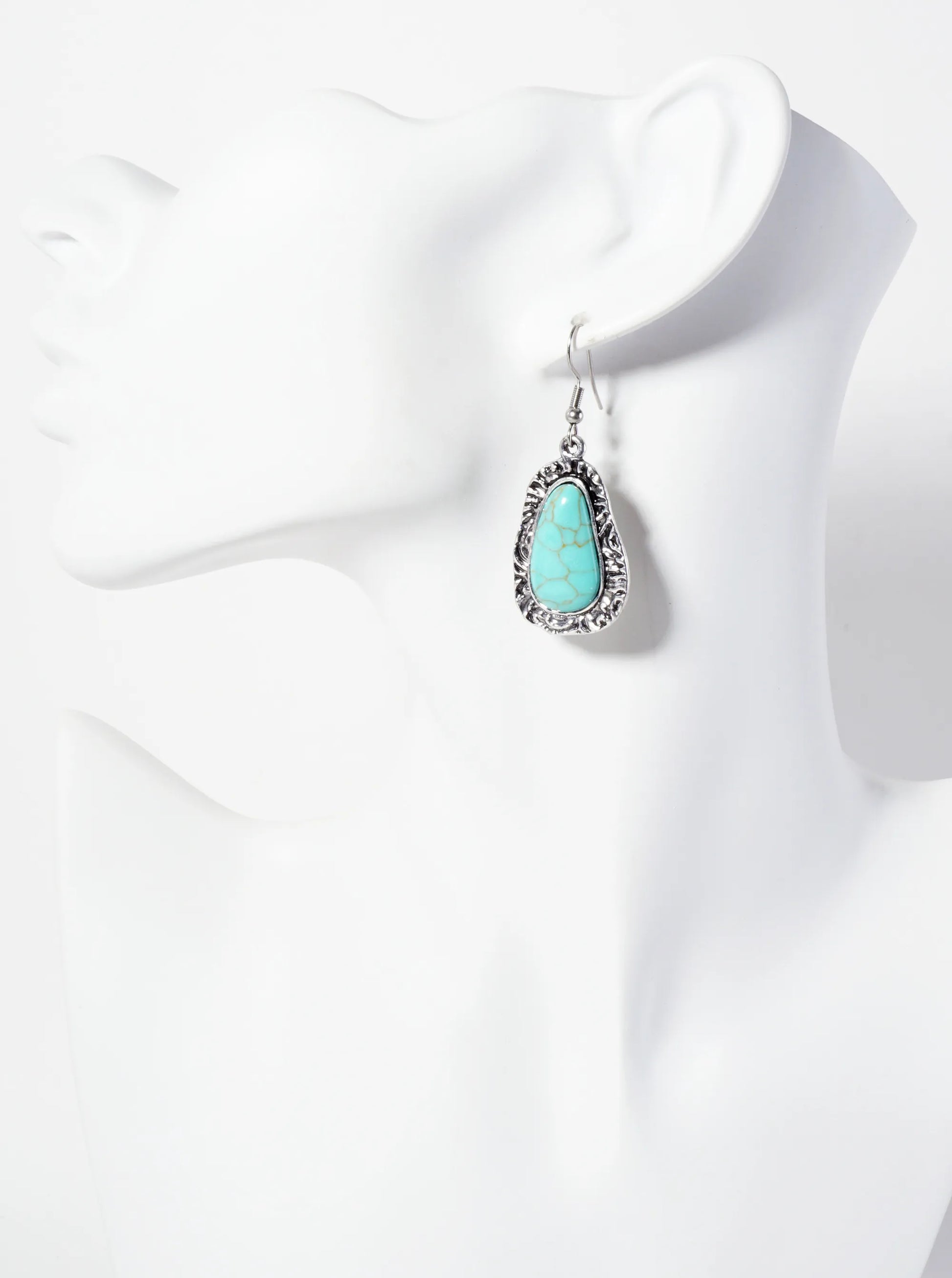 Textured Organic-Shaped Semi-Precious Natural-Stone Western Dangle Earrings