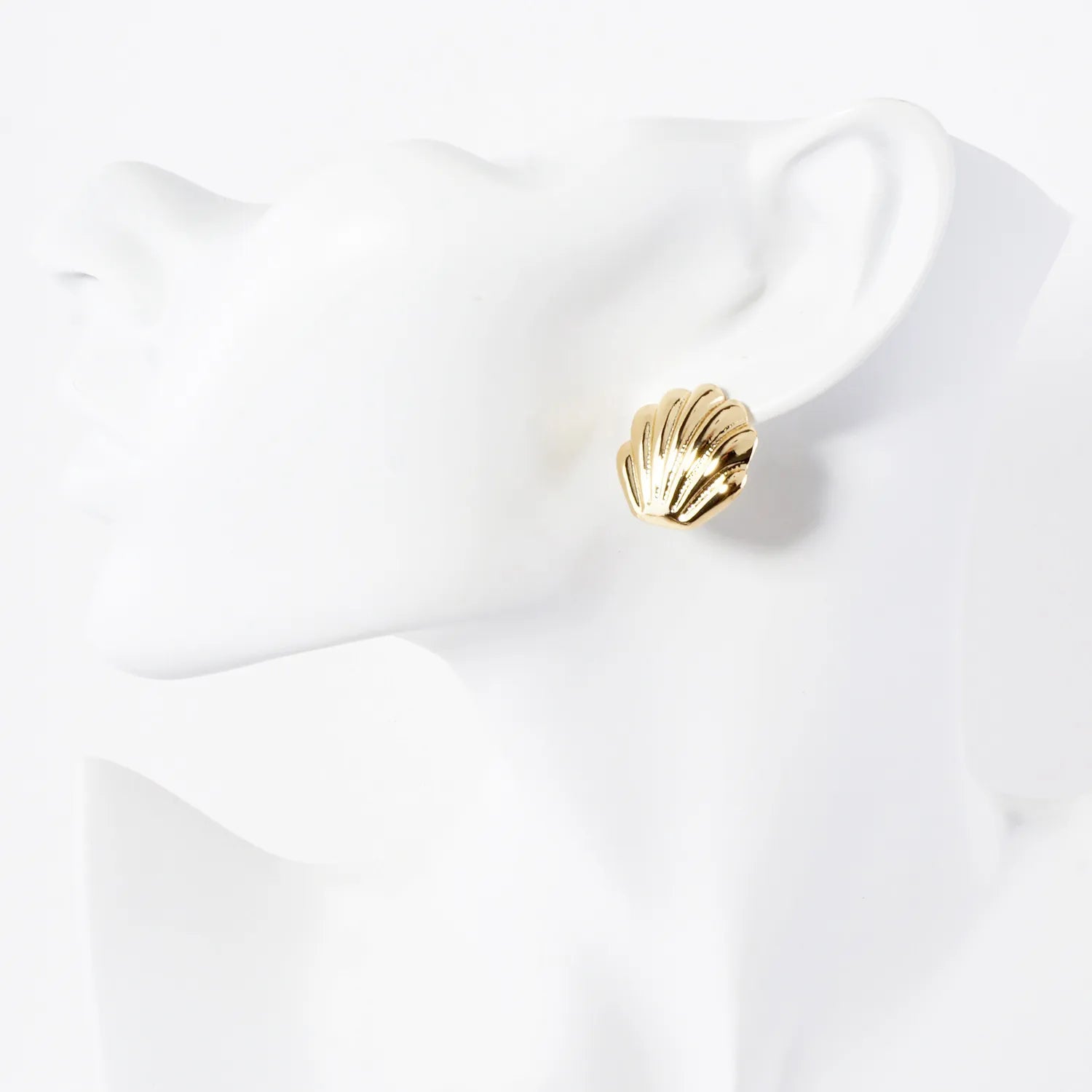 Textured Polished Seashell Design Stud Earrings Crafted In 14K-gold-dipped Brass, Featuring Gentle Ridges And A Warm, Reflective Finish That Add A Subtle Coastal Accent To Your Look While Bringing A Touch Of Sea-inspired Elegance To Everyday Styling.