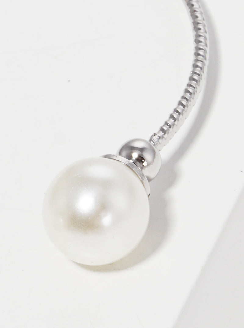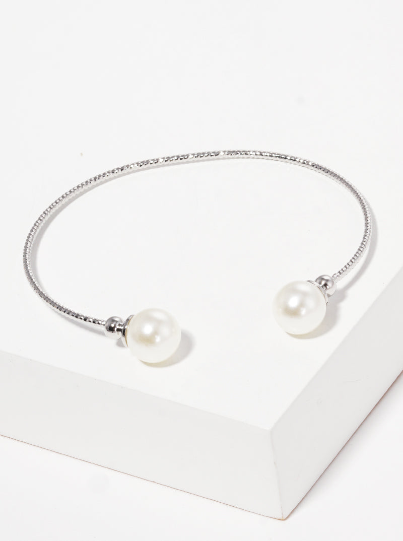 Textured Steel Wire Cuff Bracelet With Glass Pearl Beads