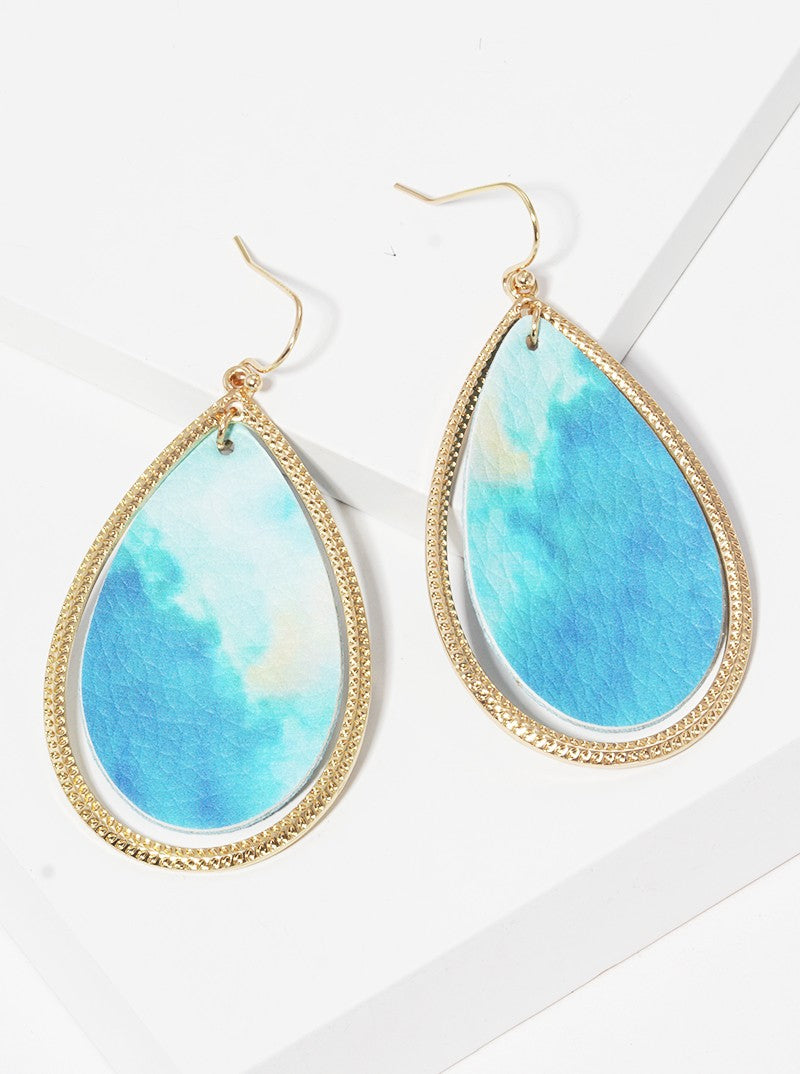 Textured Teardrop With Leatherette Fishhook Dangle Drop Earrings