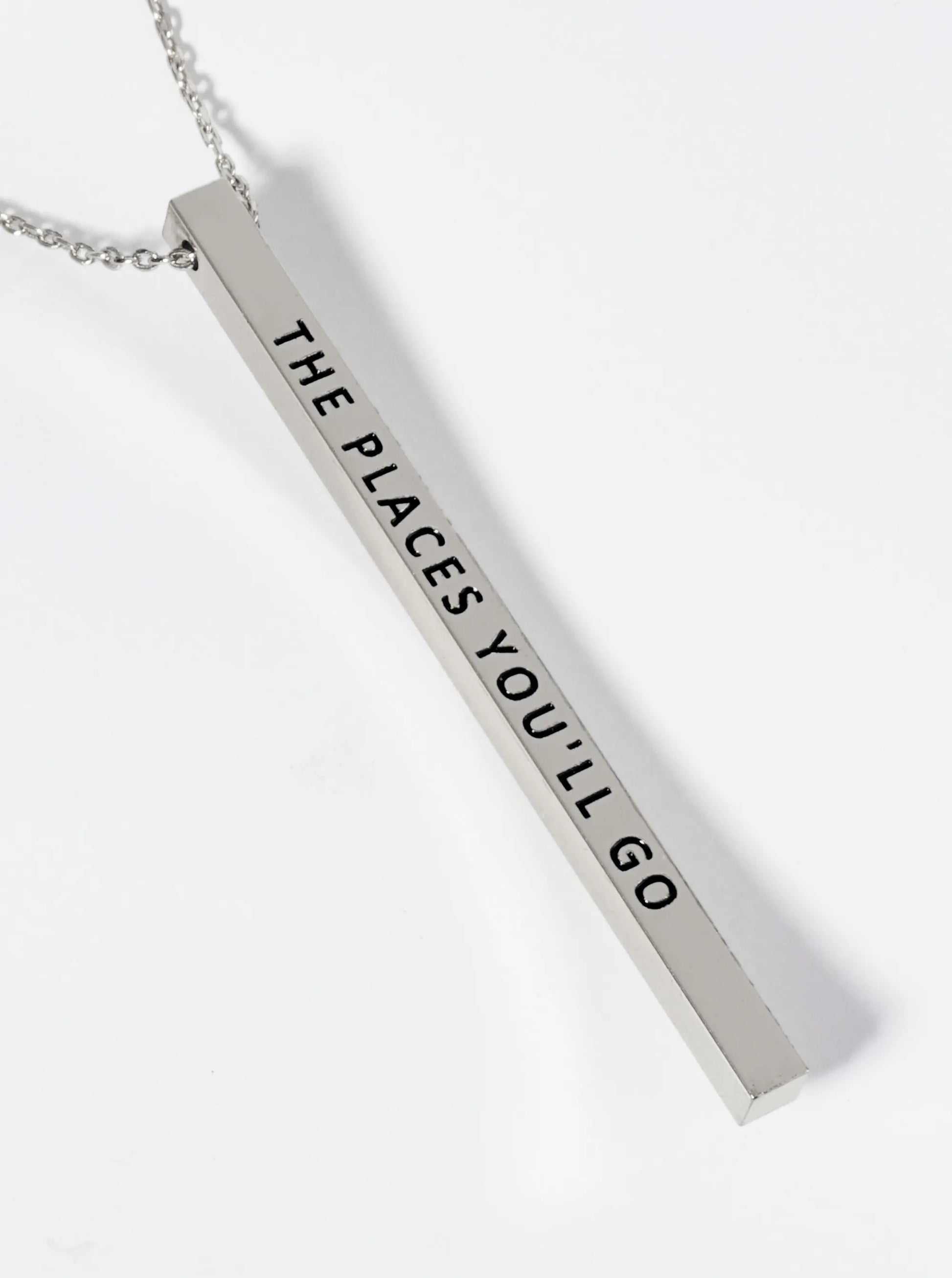 The Places You Will Go Engraved Vertical Bar Pendant Inspirational Necklace