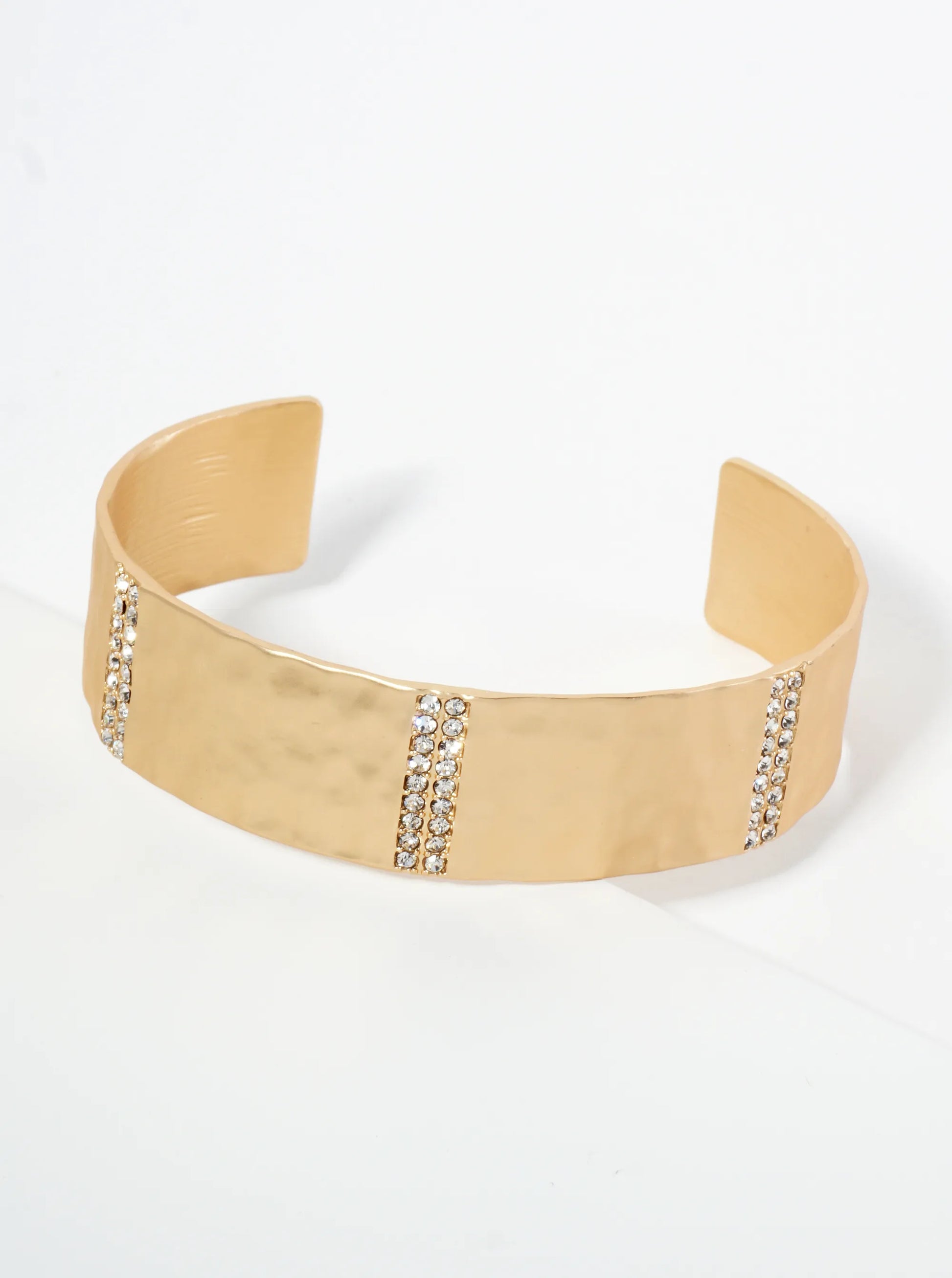 Three Bold Crystal Row Accents Open Cuff Bracelet